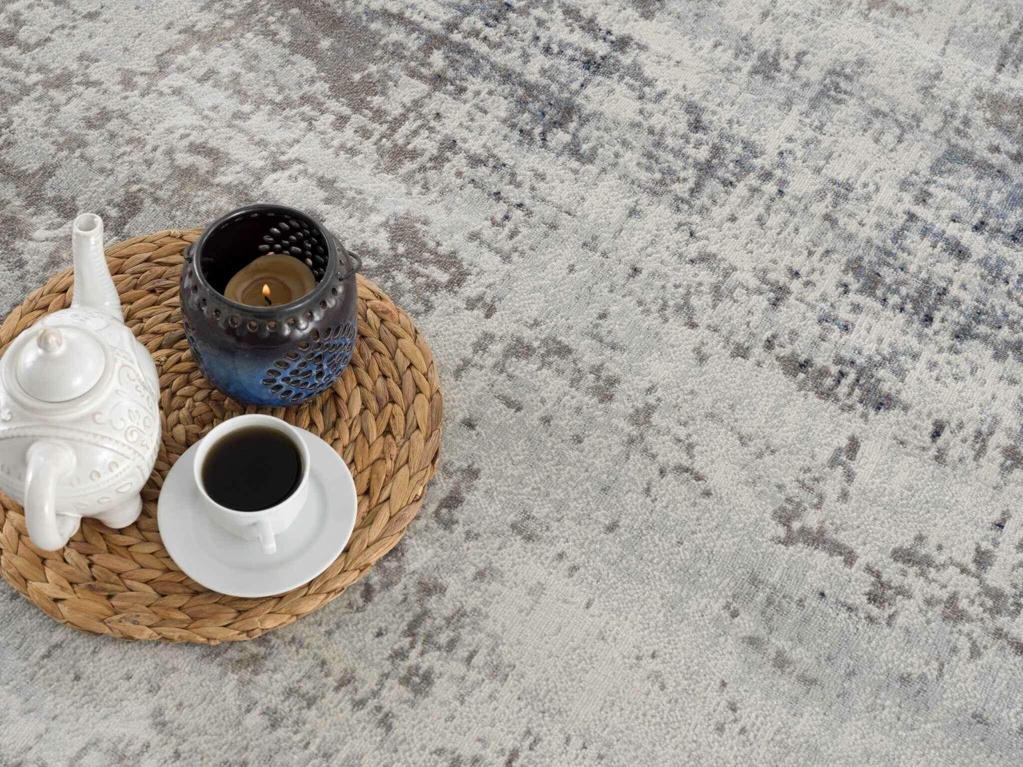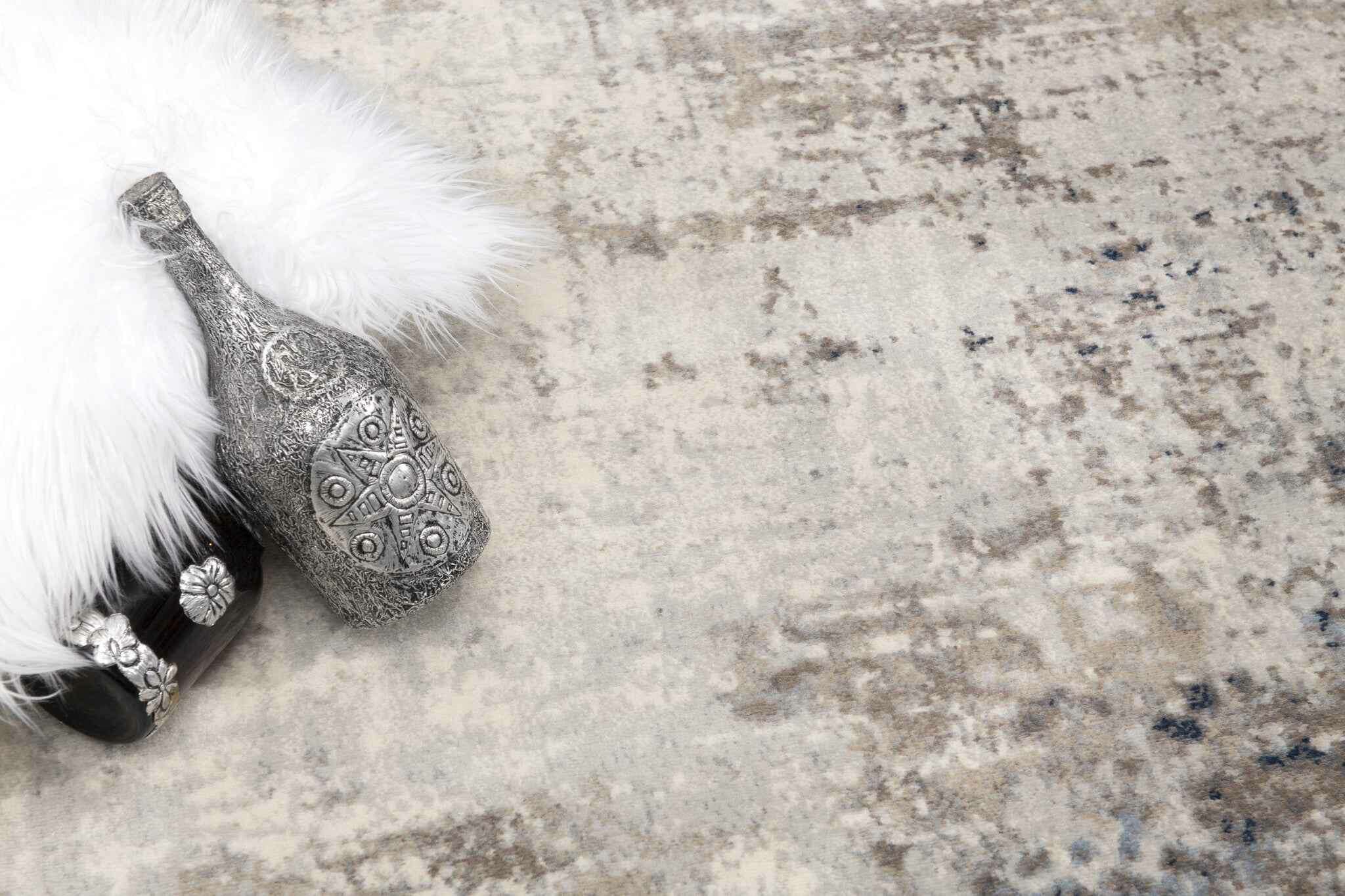 The visually intriguing abstract patterns in a subtle color palette make this Navy Blue Distressed Striations Area Rug a perfect pick to add an artistic appeal to your living space. Giving off a weathered impression with its skillful use of navy blue and beige hues on an ivory base to accentuate the aesthetics of antique pieces. Made in Turkey with 100% inherently durable and stain-resistant polypropylene fibers to stand up the elements of high traffic indoor areas while ensuring its strength and sheen for years to come. The high and dense pile construction not only adds to its surface interest but also offers a soft and cozy layer under the feet to experience utmost comfort as you step on this piece. The neutral hues of this area rug make it not only a cornerstone for contemporary styling but also a versatile accent to suit any interior theme. 66” x 45” x 0.4”
