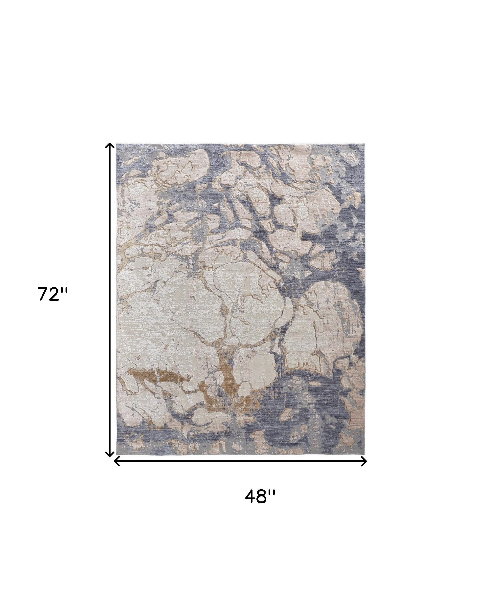 4' X 6' Tan And Blue Abstract Power Loom Distressed Area Rug