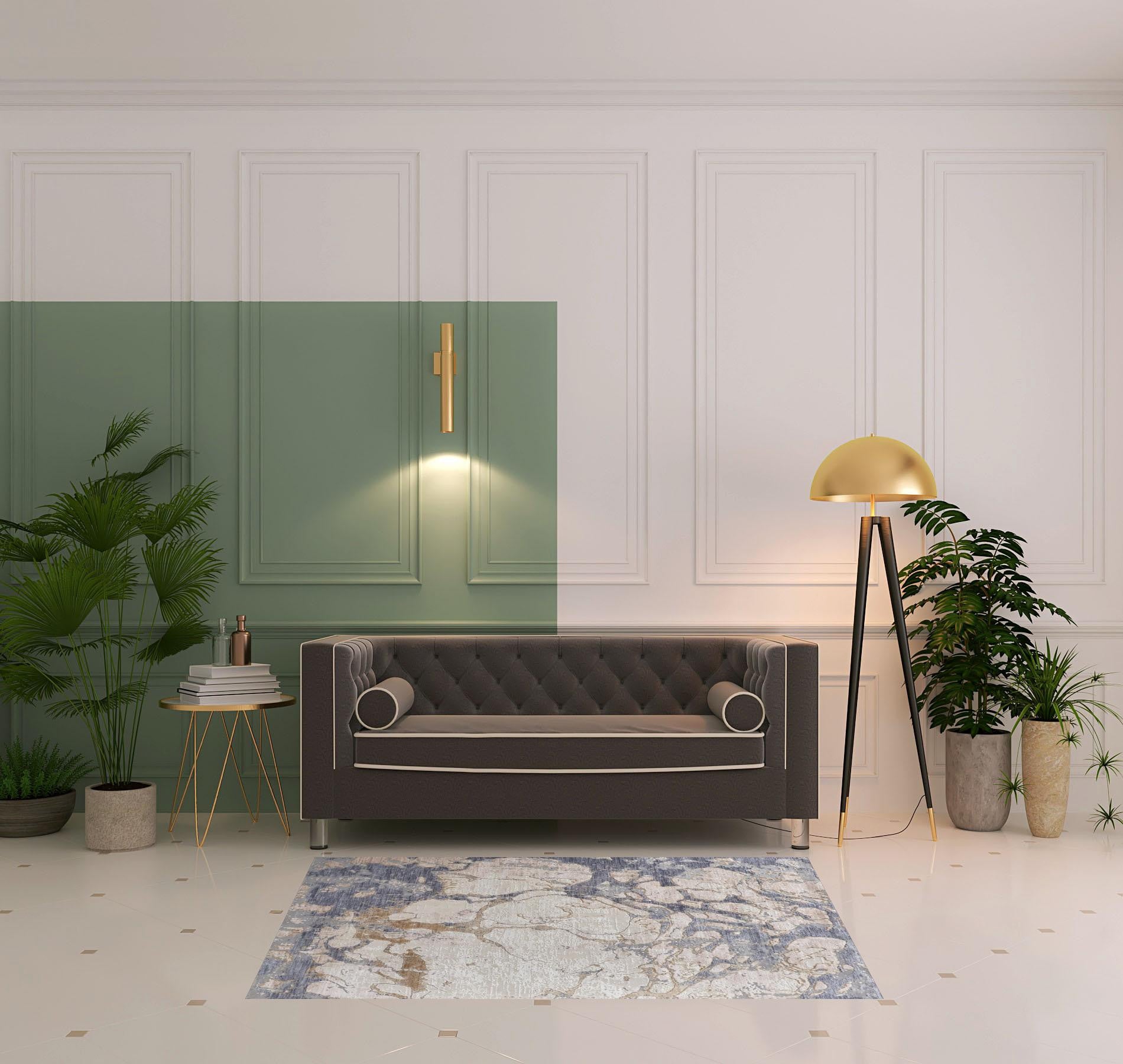 Set an inviting tone in your space with this 4' x 6' tan and blue abstract power loom distressed area rug. This rectangle shaped rug features a abstract design in tan and blue to give it visual interest. A classic shape marries with good looking design for your space This superior Turkish rug represents the highest quality and is built to last. Area Rugs help to give warmth and sense of home to your space. 0.28" H x 48" W x 72" D