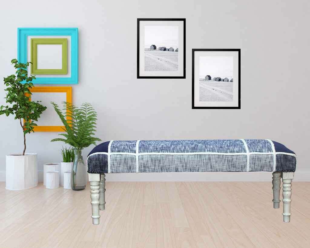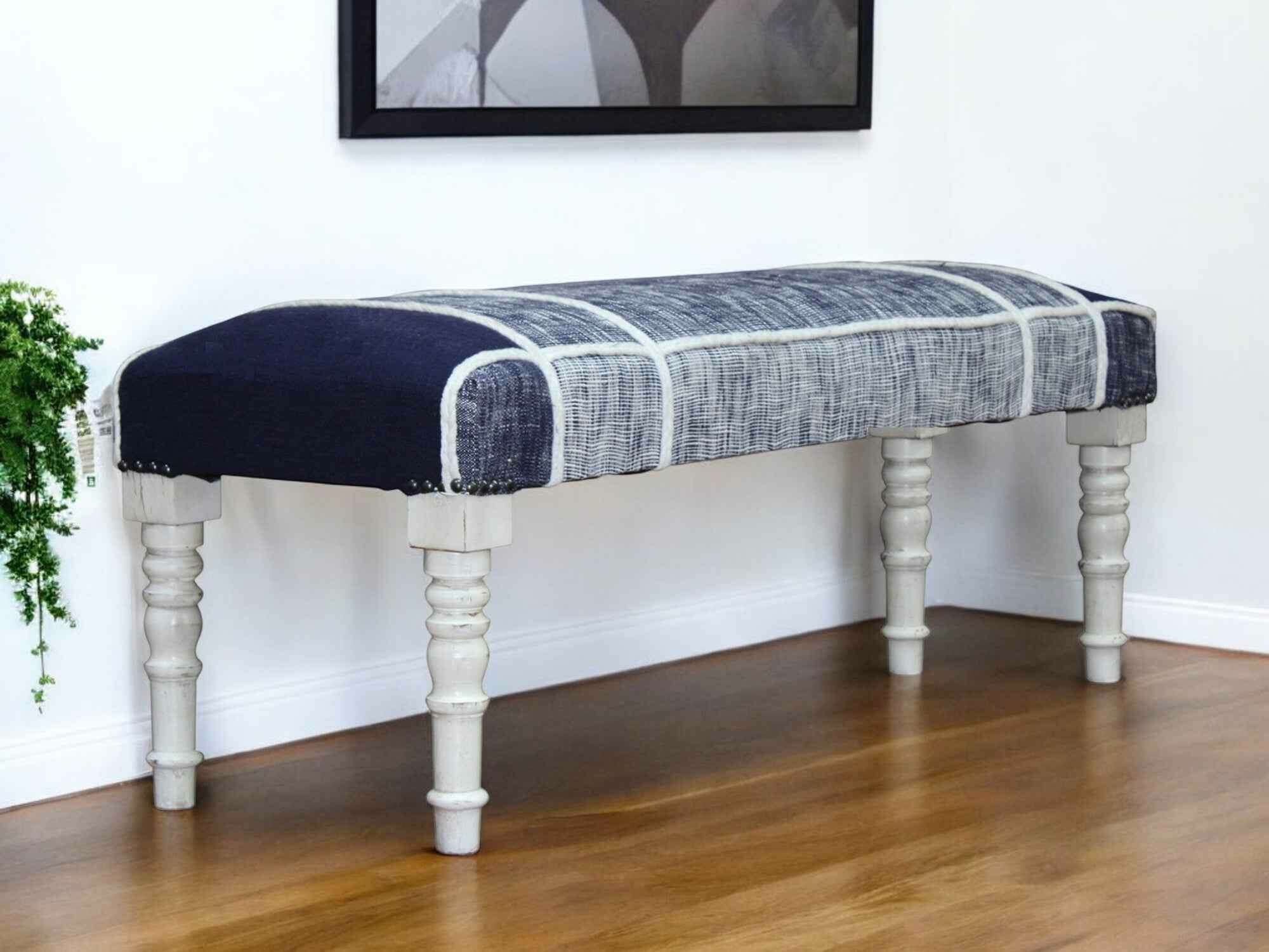 47" Blue And Gray Textural White Leg Upholstered Bench Vai al contenuto