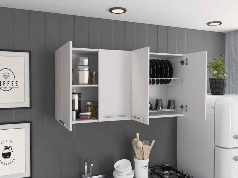 47" White Wood Wall Mounted Accent Chest With Four Doors