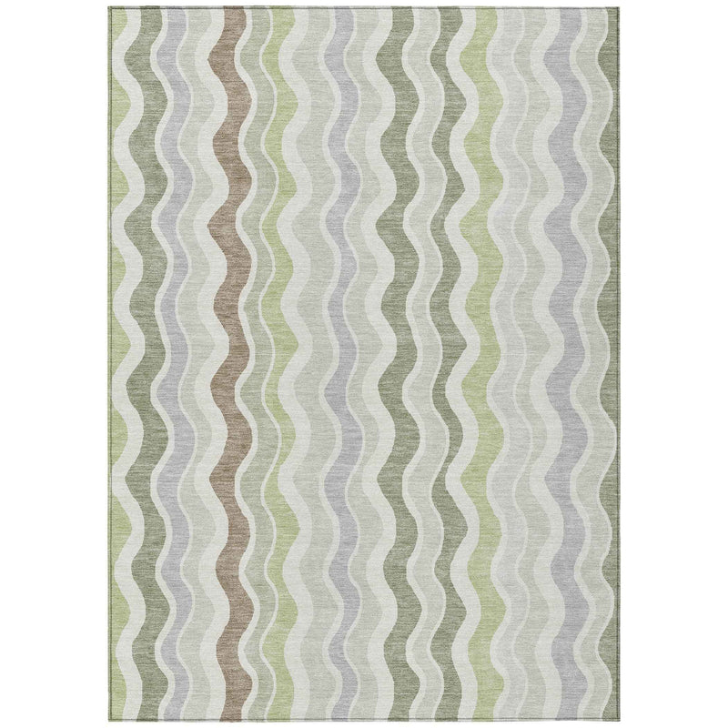 5' X 8' Artichoke Green Ivory And Brown Striped Washable Indoor Outdoor Area Rug