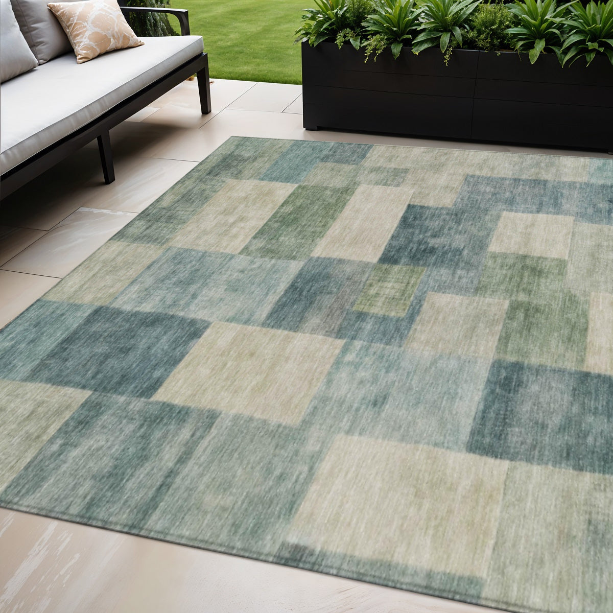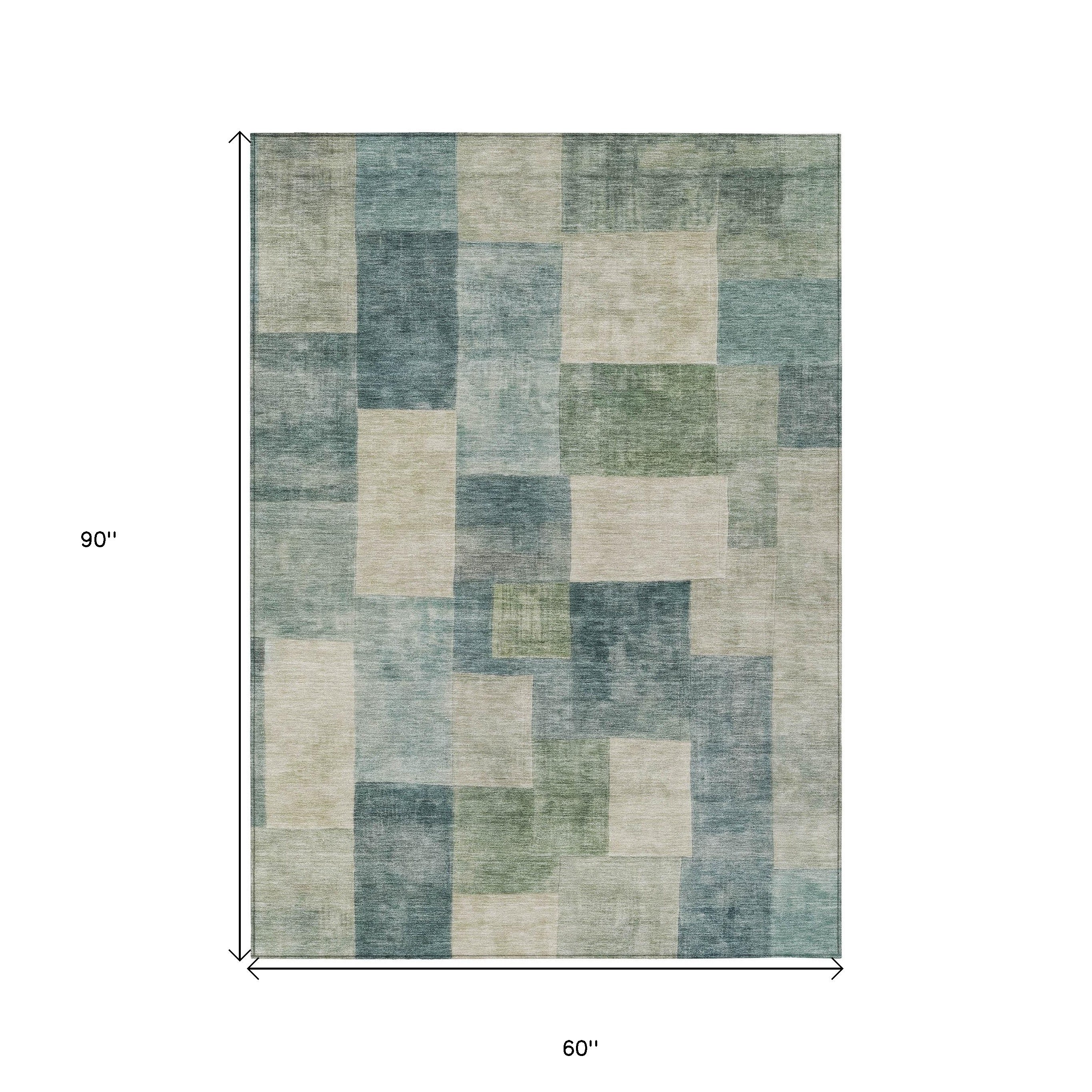 5' X 8' Blue Geometric Washable Indoor Outdoor Area Rug