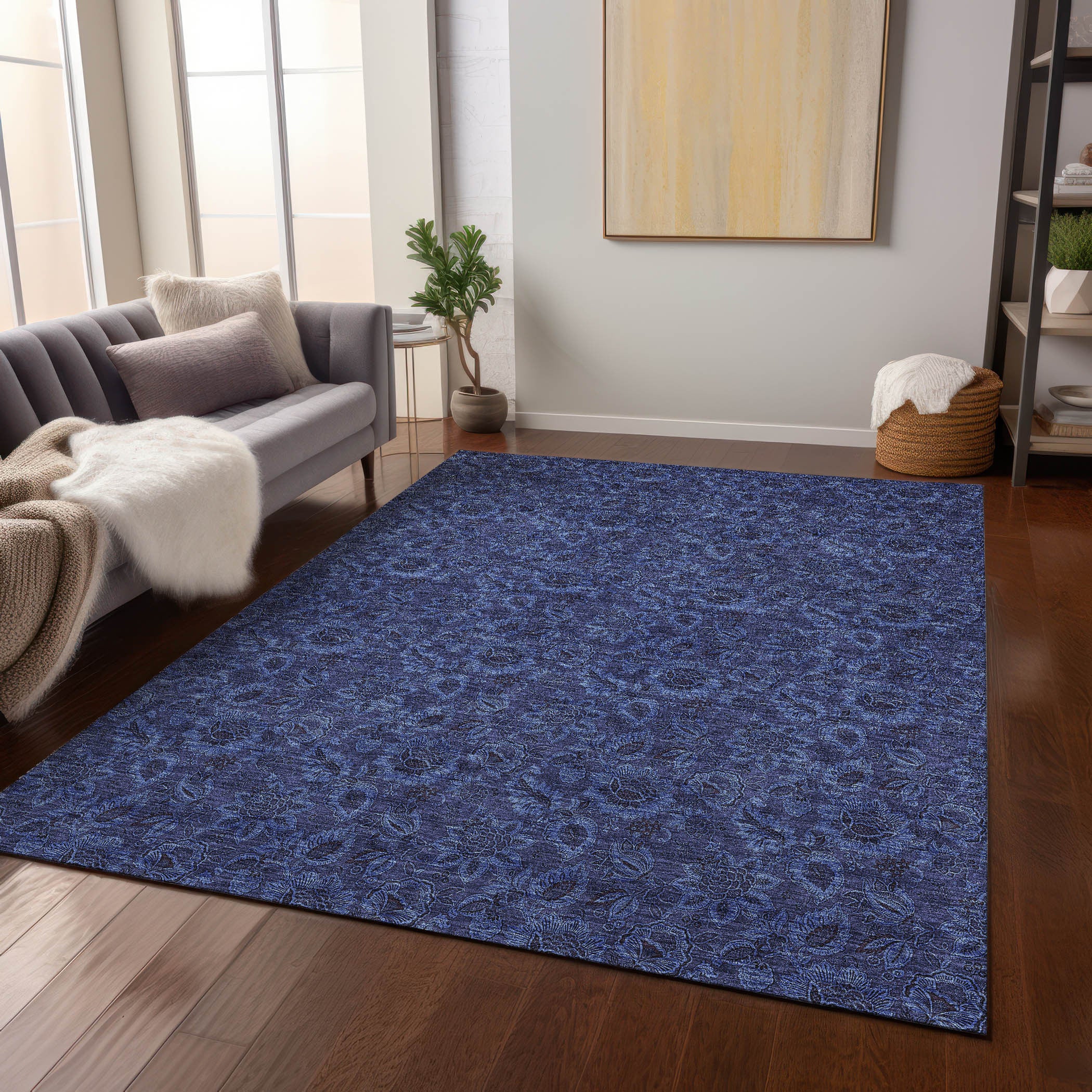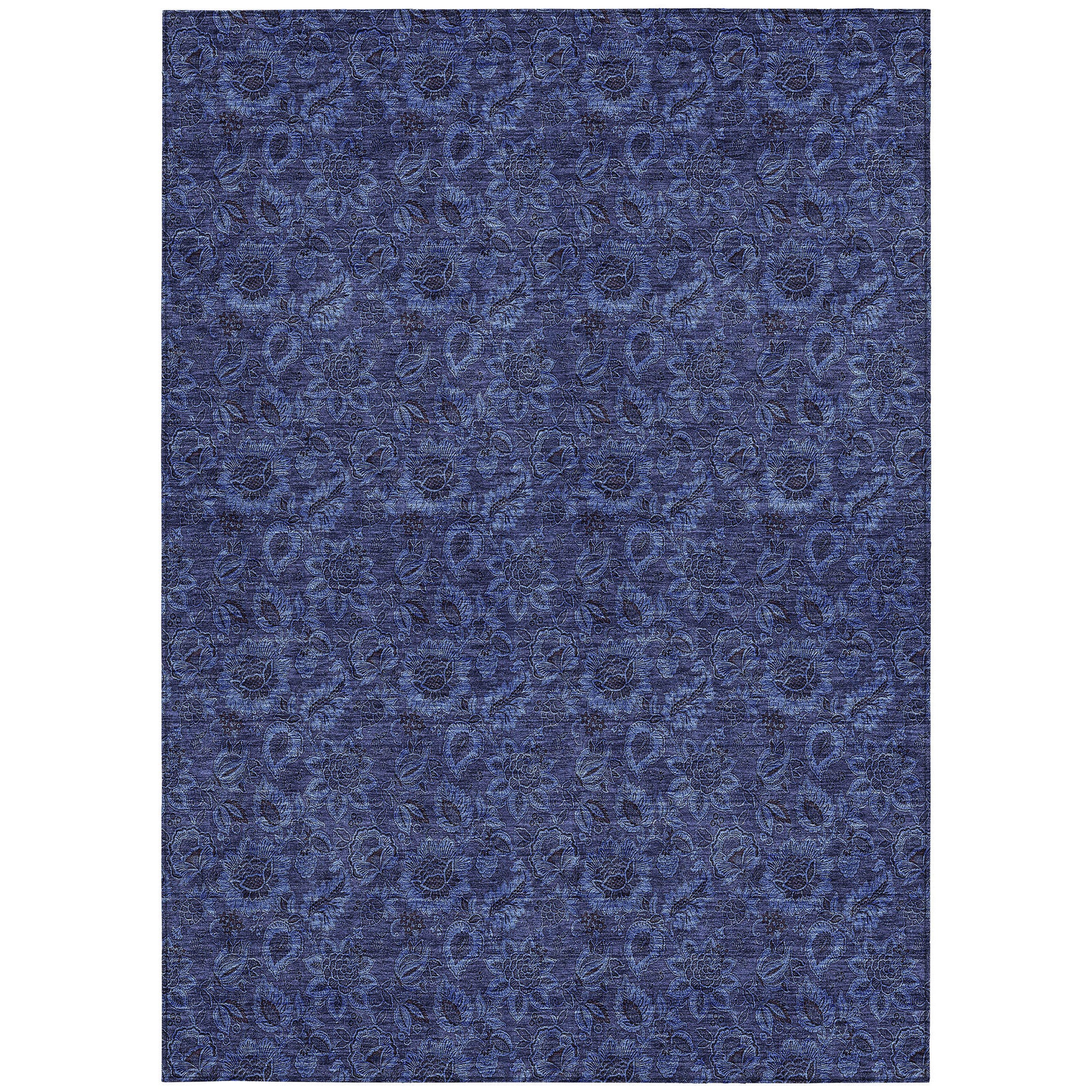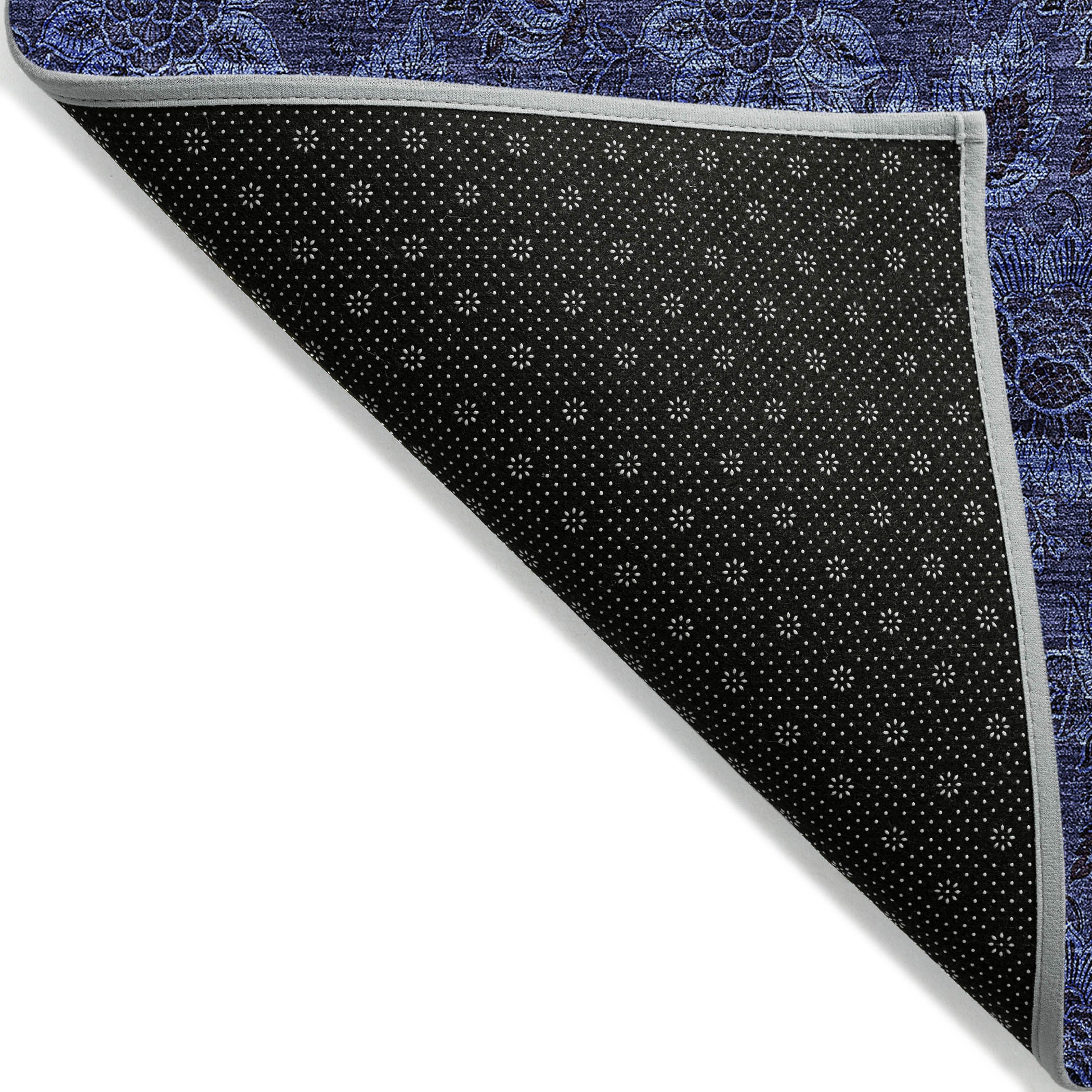 5' X 8' Navy Blue And Charcoal Floral Washable Indoor Outdoor Area Rug