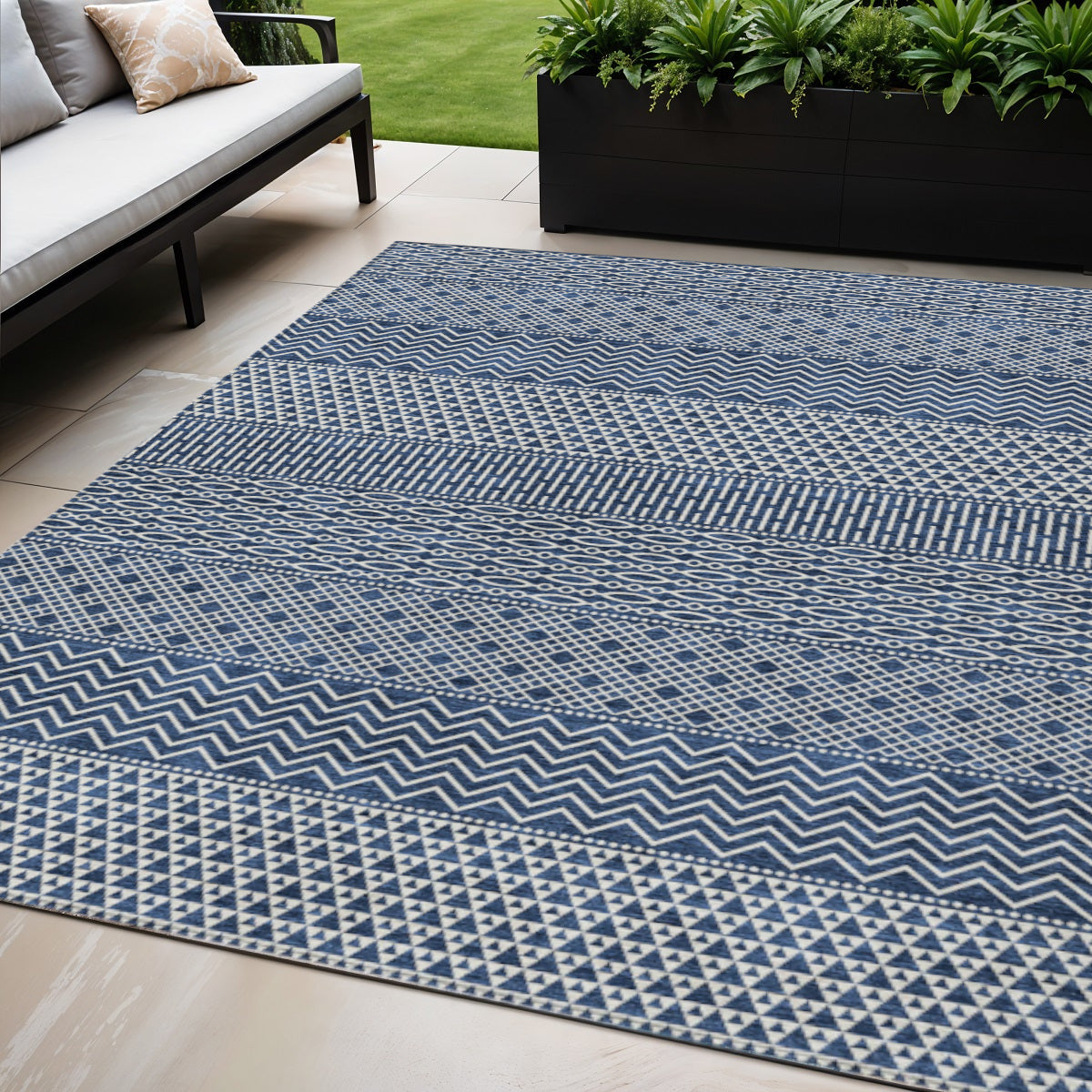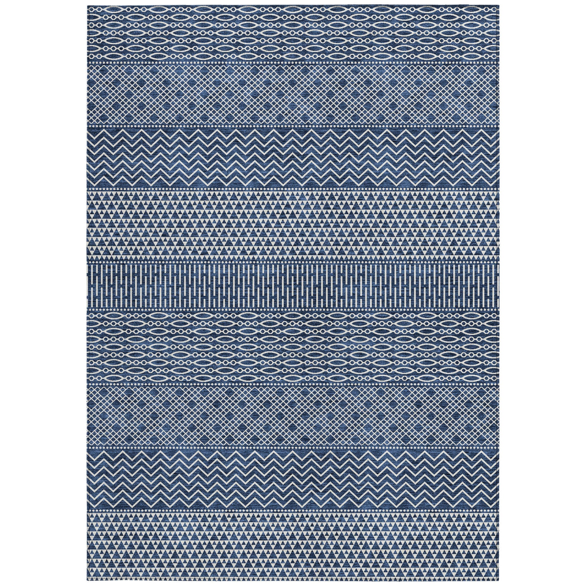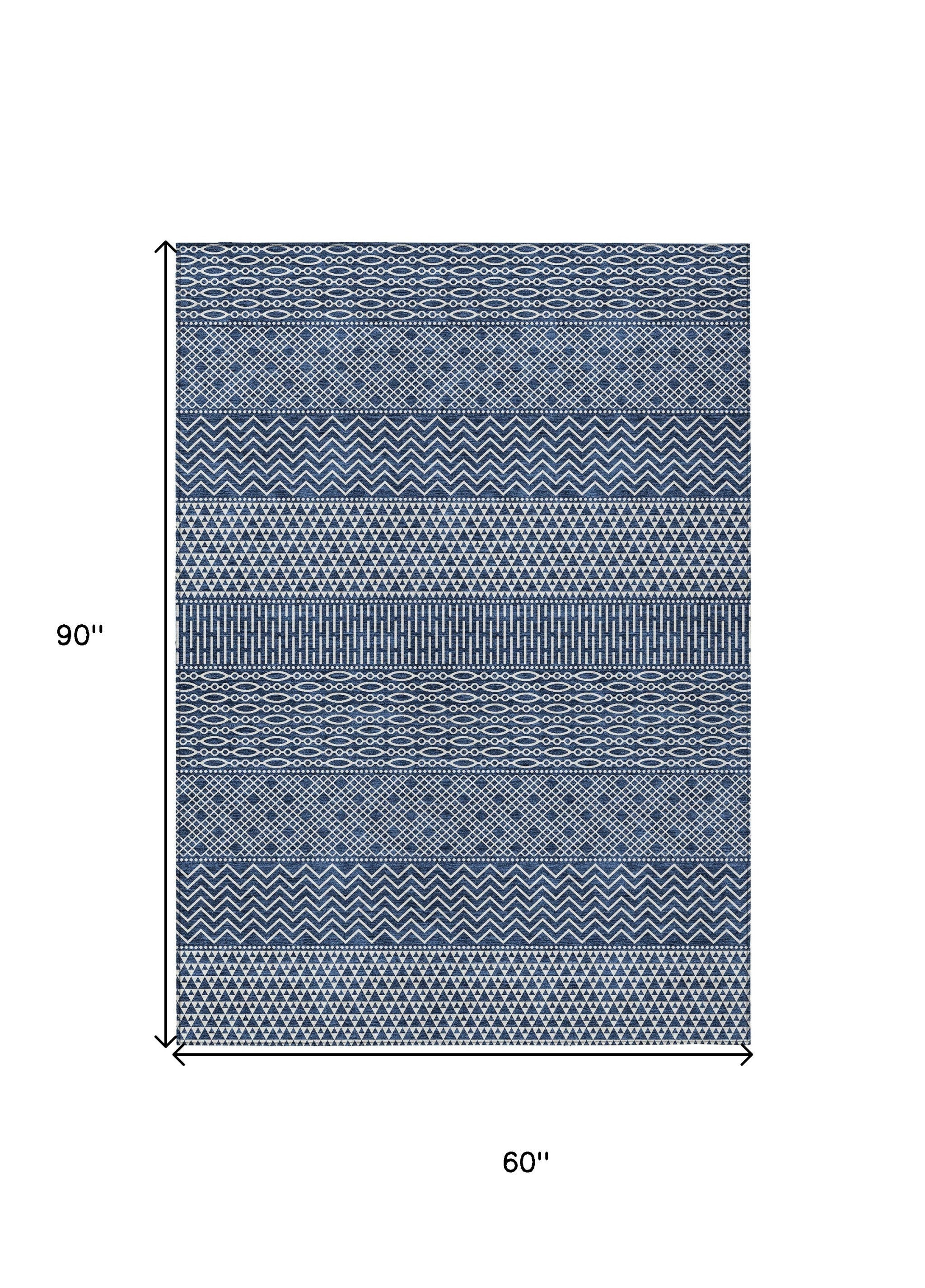 5' X 8' Navy Blue And Ivory Chevron Washable Indoor Outdoor Area Rug
