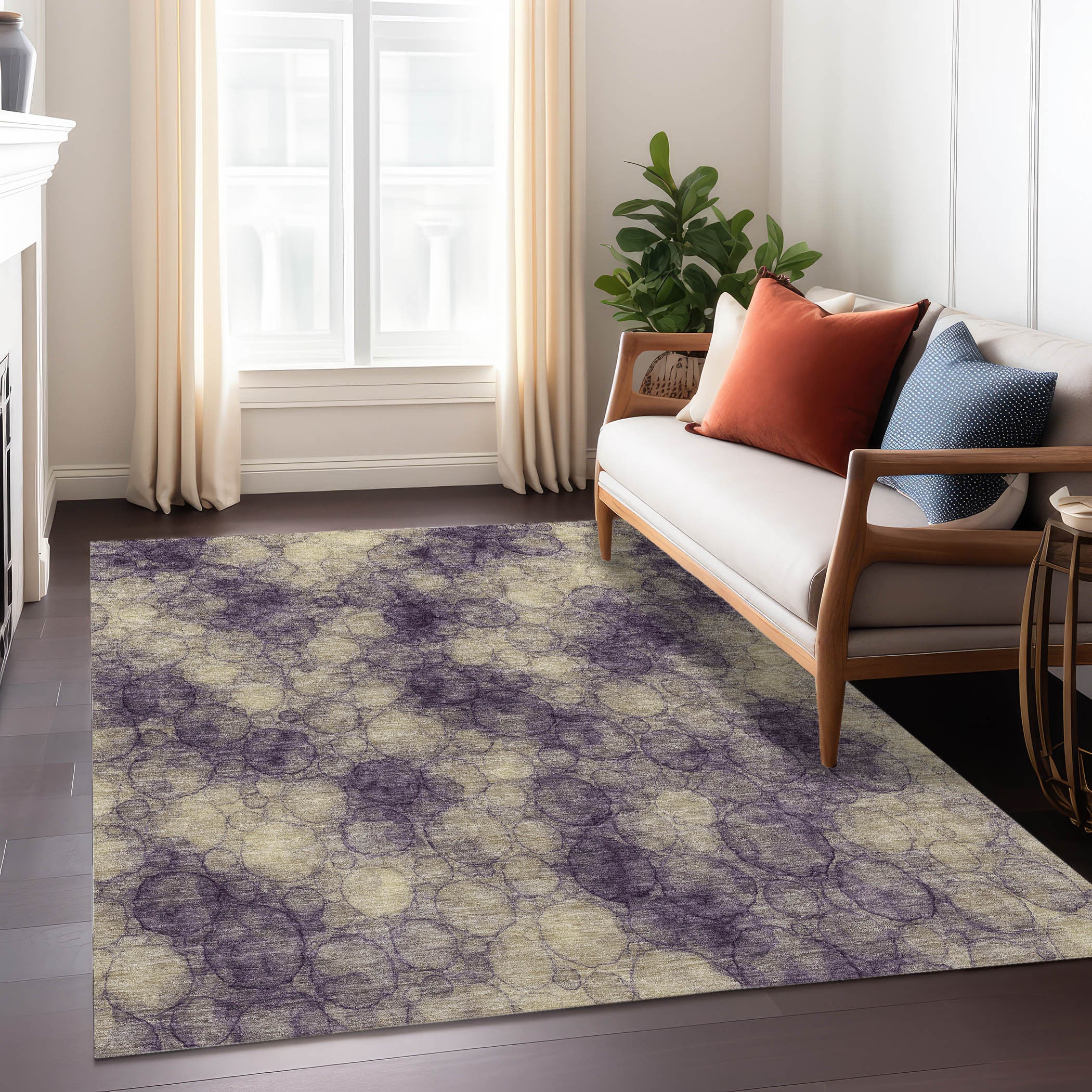 Set an inviting tone in your space with this 5-foot x 8-foot plum and wheat abstract washable indoor outdoor area rug. This rectangle shaped rug features a abstract design that will work well both indoors or out. A classic shape marries with good looking design for your living room, hall, bedroom, porch, patio, or poolside. Ideal for outdoor spaces or high traffic areas with kids and pets, this rug is made from heavy duty polyester that is stain resistant to help repel water, dirt, and stains. Versatile in use, durable, and easy to maintain, this rug is an ideal solution to add a decorative and inviting touch to your indoor or outdoor space. 60.00-inch h x 90.00-inch w x 0.19-inch d.