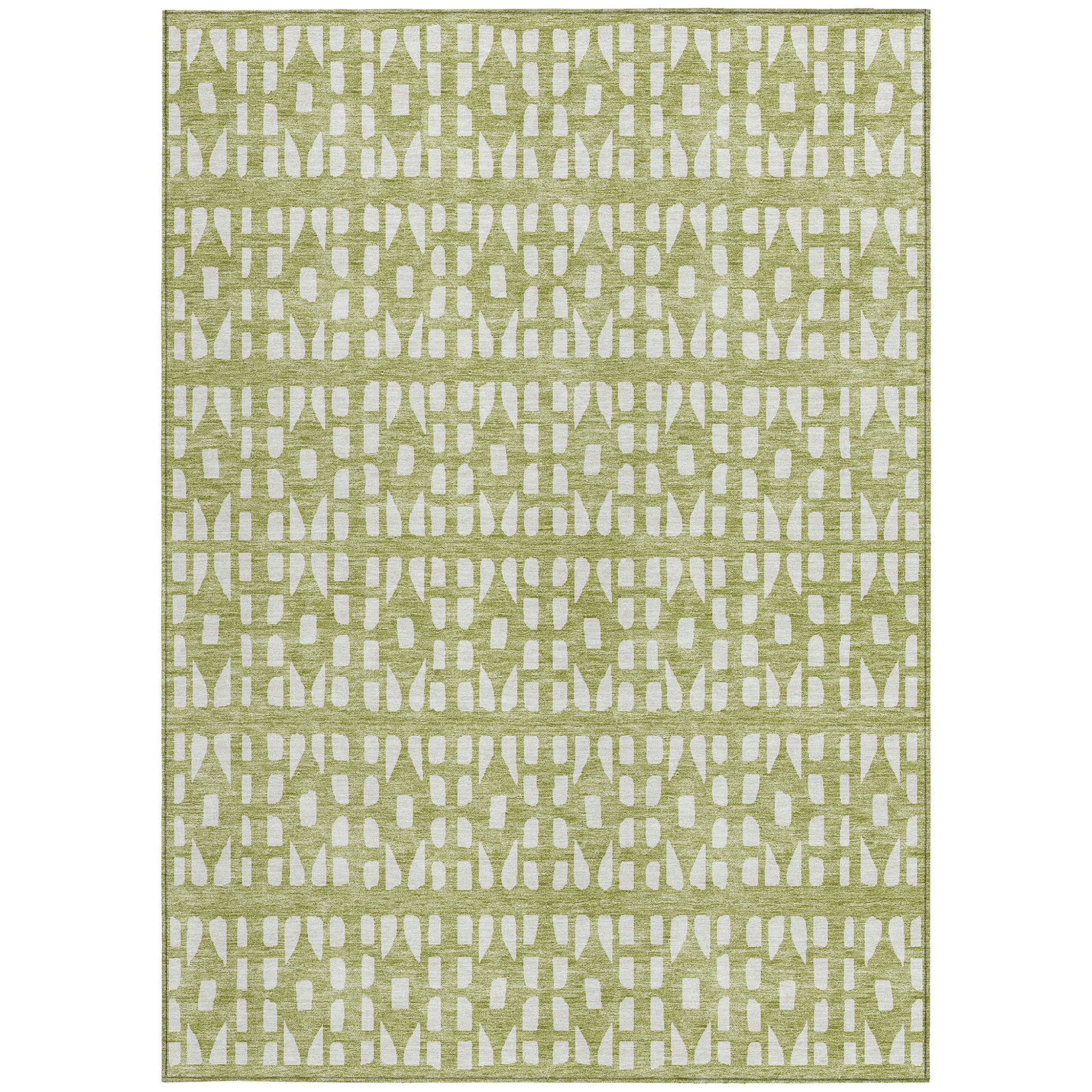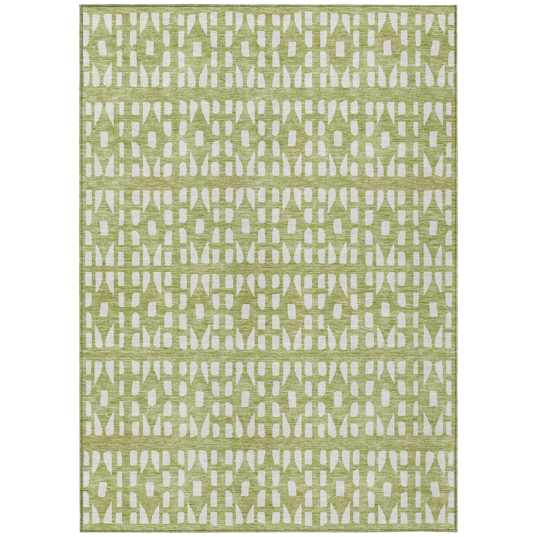 Add some artistry to your room with this 5-foot x 8-foot sage and ivory geometric washable indoor outdoor area rug. This rectangle shaped rug features a geometric design that will work well both indoors or out. A classic shape marries with good looking design for your living room, hall, bedroom, porch, patio, or poolside. Ideal for outdoor spaces or high traffic areas with kids and pets, this rug is made from heavy duty polyester that is stain resistant to help repel water, dirt, and stains. Makes a great way to dress up your patio, porch, or poolside, but also works well as a durable and easy to maintain option in the kitchen, family room, or mudroom. 60-inch h x 90-inch w x 0.19-inch d.