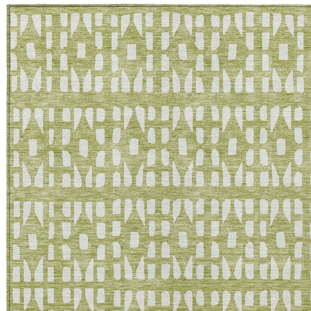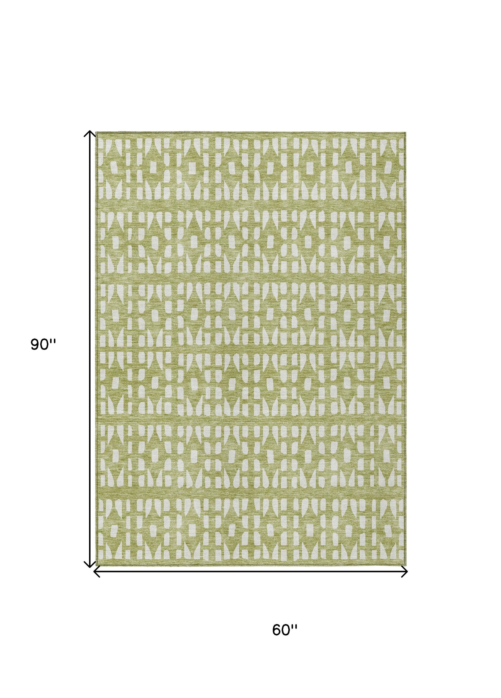 5' X 8' Sage And Ivory Geometric Washable Indoor Outdoor Area Rug