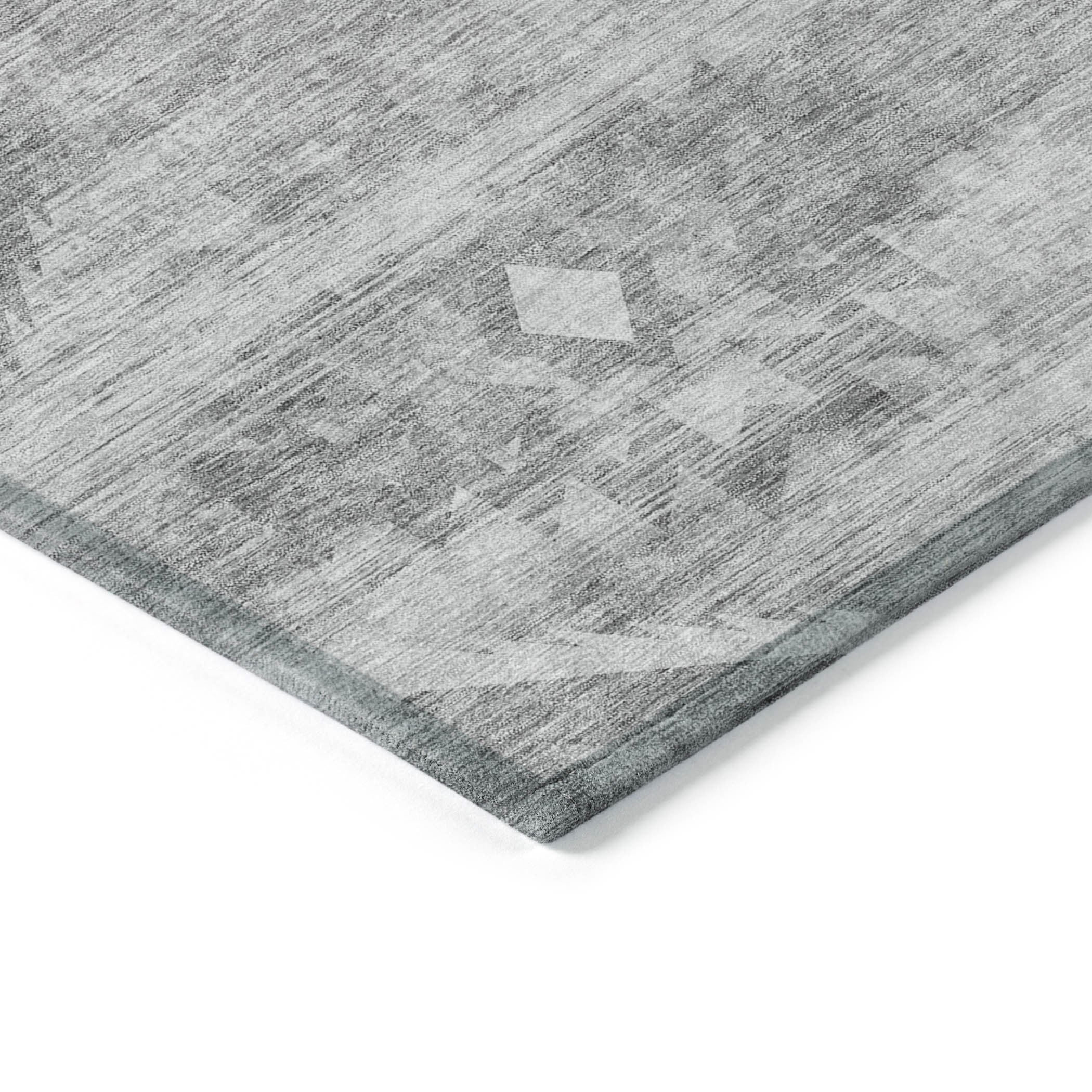 5' X 8' Silver Gray And Charcoal Southwestern Washable Indoor Outdoor Area Rug