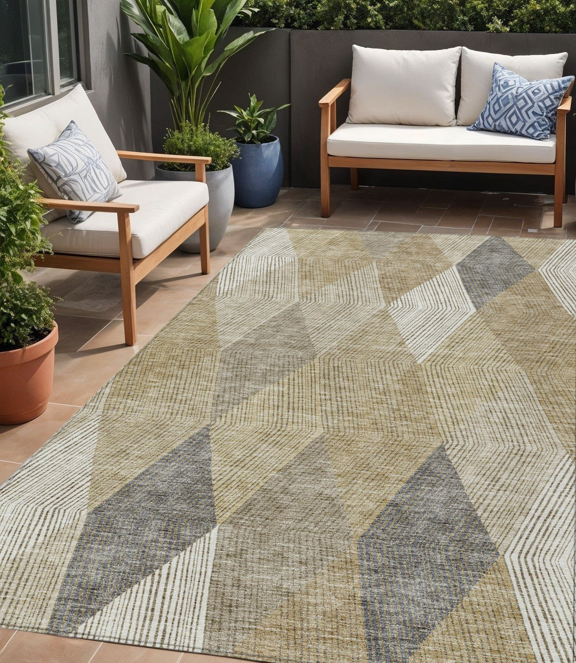 Add great coloration and comfortable texture to your space with this 5-foot x 8-foot wheat taupe and ivory argyle washable indoor outdoor area rug. This rectangle shaped rug features a argyle design that will work well both indoors or out. A classic shape marries with good looking design for your living room, hall, bedroom, porch, patio, or poolside. Ideal for outdoor spaces or high traffic areas with kids and pets, this rug is made from heavy duty polyester that is stain resistant to help repel water, dirt, and stains. Versatile in use, durable, and easy to maintain, this rug is an ideal solution to add a decorative and inviting touch to your indoor or outdoor space. 60-inch h x 90-inch w x 0.19-inch d.