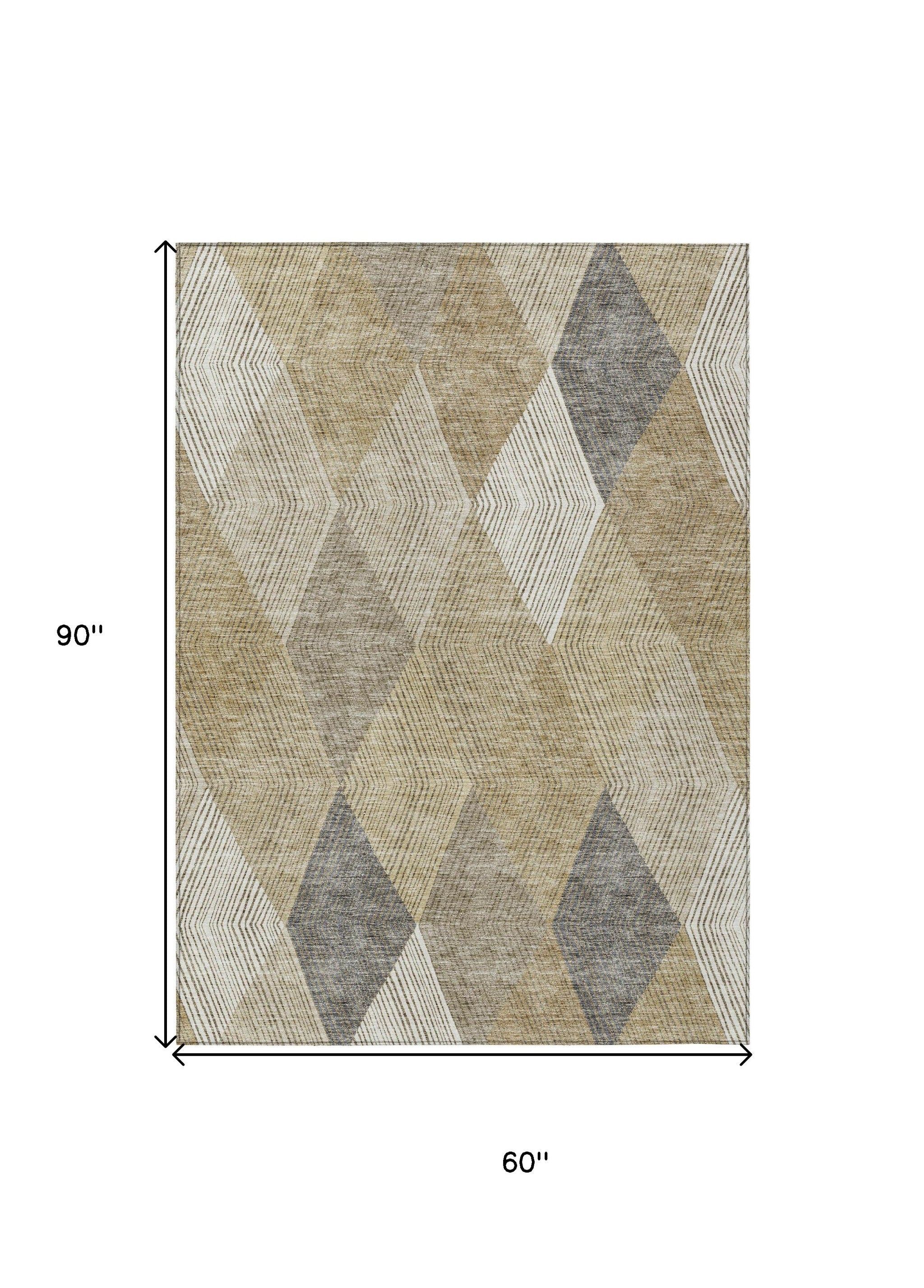 5' X 8' Wheat Taupe And Ivory Argyle Washable Indoor Outdoor Area Rug