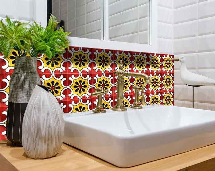 The possibilities are endless with these 6" x 6" Blue Gray Yellow Pop Peel and Stick Removable Tile stickers. These fabulous peel and stick tiles will add sophisticated flair and design to your kitchen backsplash, fireplace mantel, stair treads, half wall, bathroom or nook. These 6" square tile stickers are an easy, no mess solution to complete a personalized and colorful room makeover. Easy to apply on any clean dry flat surface, and easy to remove. Multi use and multi-room appeal make this design option is perfect for renters, landlords, college students and homeowners alike. Peel and stick tile decals make it easy to turn your space into a home. Removable without damage to surfaces. One kit contains 24 stickers. Kit includes a single repeating design.