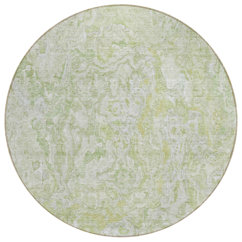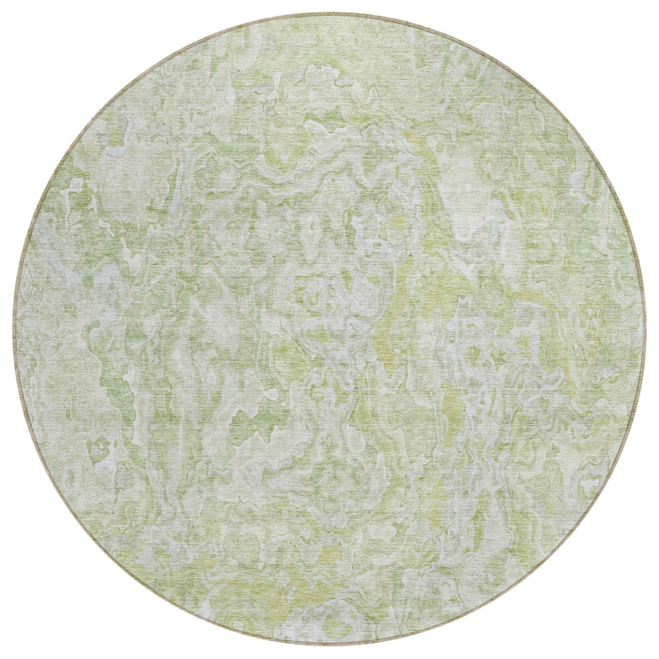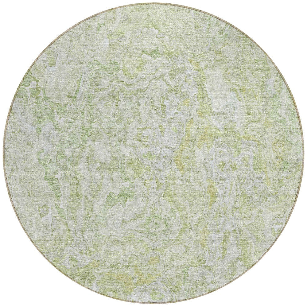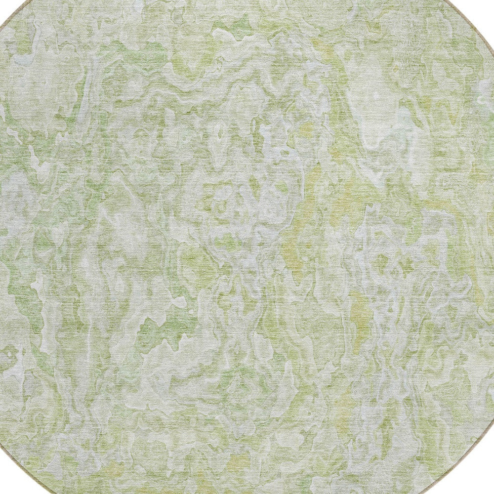 8' Artichoke Green And Fern Green Round Abstract Washable Indoor Outdoor Area Rug