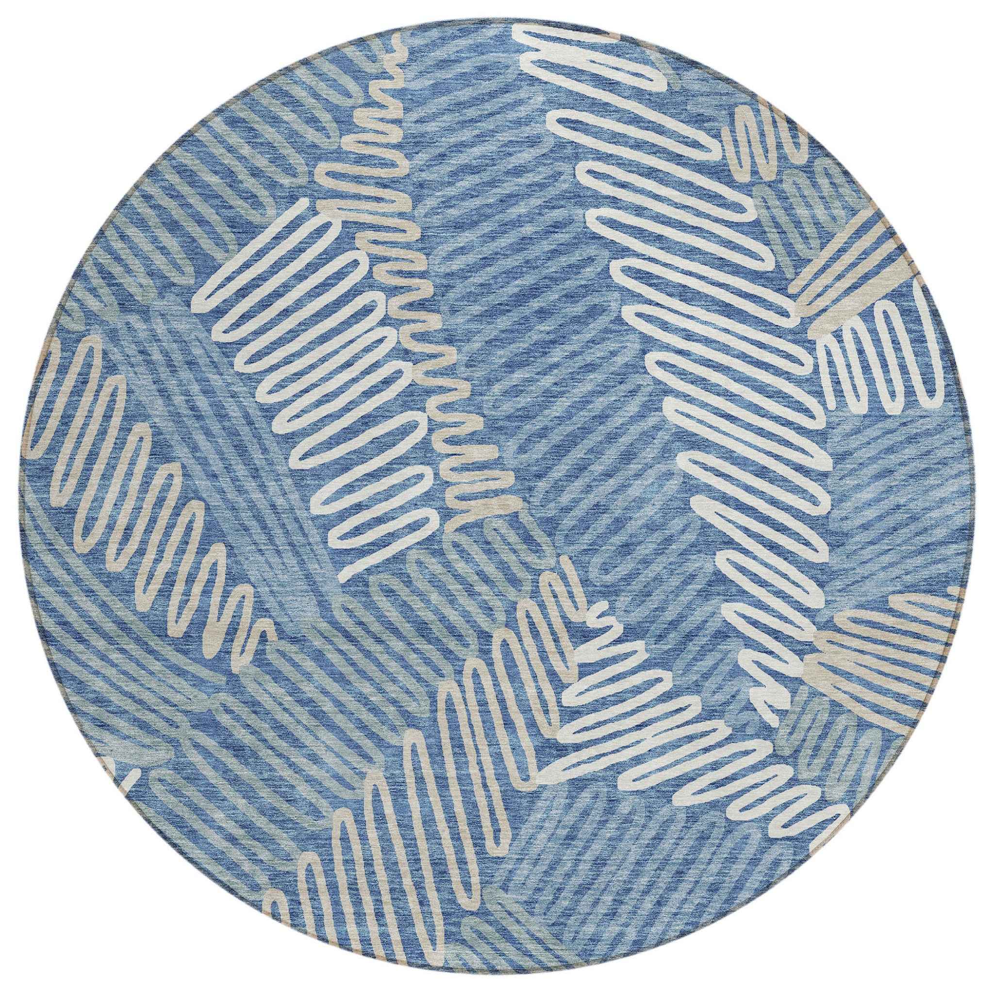 This 8-foot blue gray and ivory round floral washable indoor outdoor area rug, is a great way to add warmth to a room. This geometric round shaped rug features a floral pattern in blue, gray, and ivory that combines a good looking print with a unique and updated shape. The mix of shape, color, and design gives this rug refreshing visual interest. Ideal for outdoor spaces or high traffic areas with kids and pets, this rug is made from heavy duty polyester that is stain resistant to help repel water, dirt, and stains. Makes a great way to dress up your patio, porch, or poolside, but also works well as a durable and easy to maintain option in the kitchen, family room, or mudroom. 96-inch h x 96-inch w x 0.19-inch d.