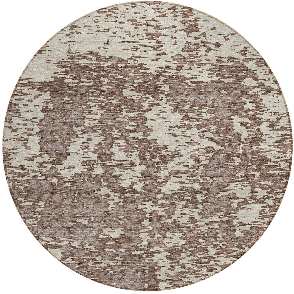 8' Brown And Ivory Round Abstract Washable Indoor Outdoor Area Rug