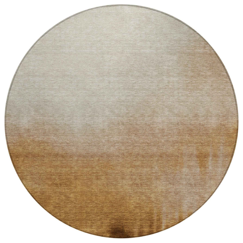 8' Copper Ivory And Chocolate Round Abstract Washable Indoor Outdoor Area Rug