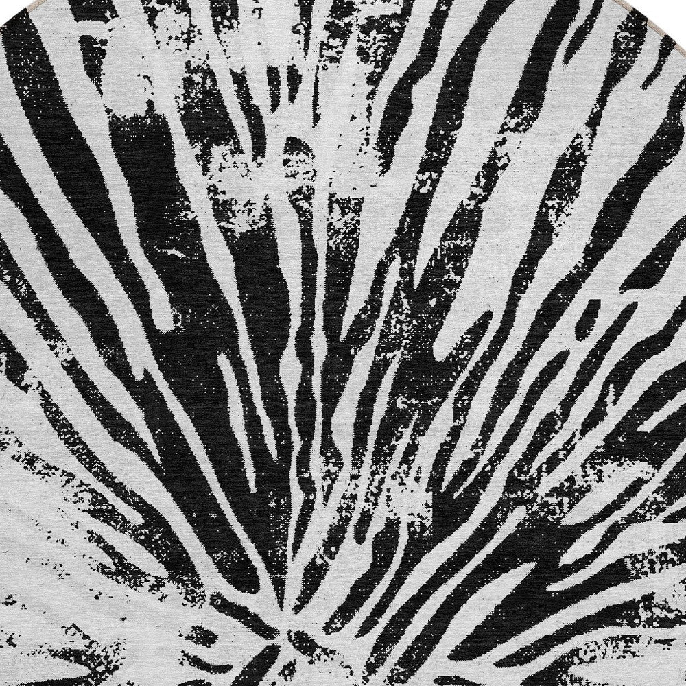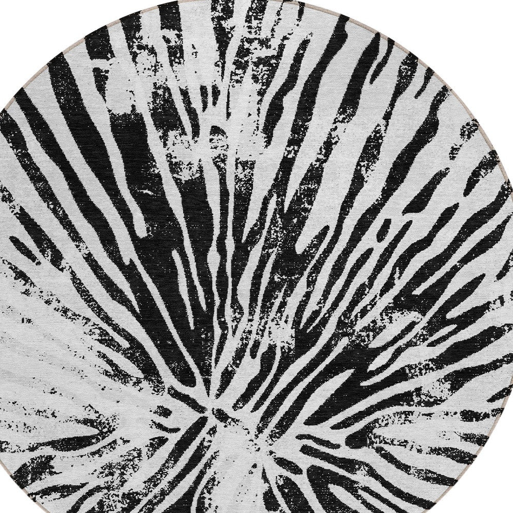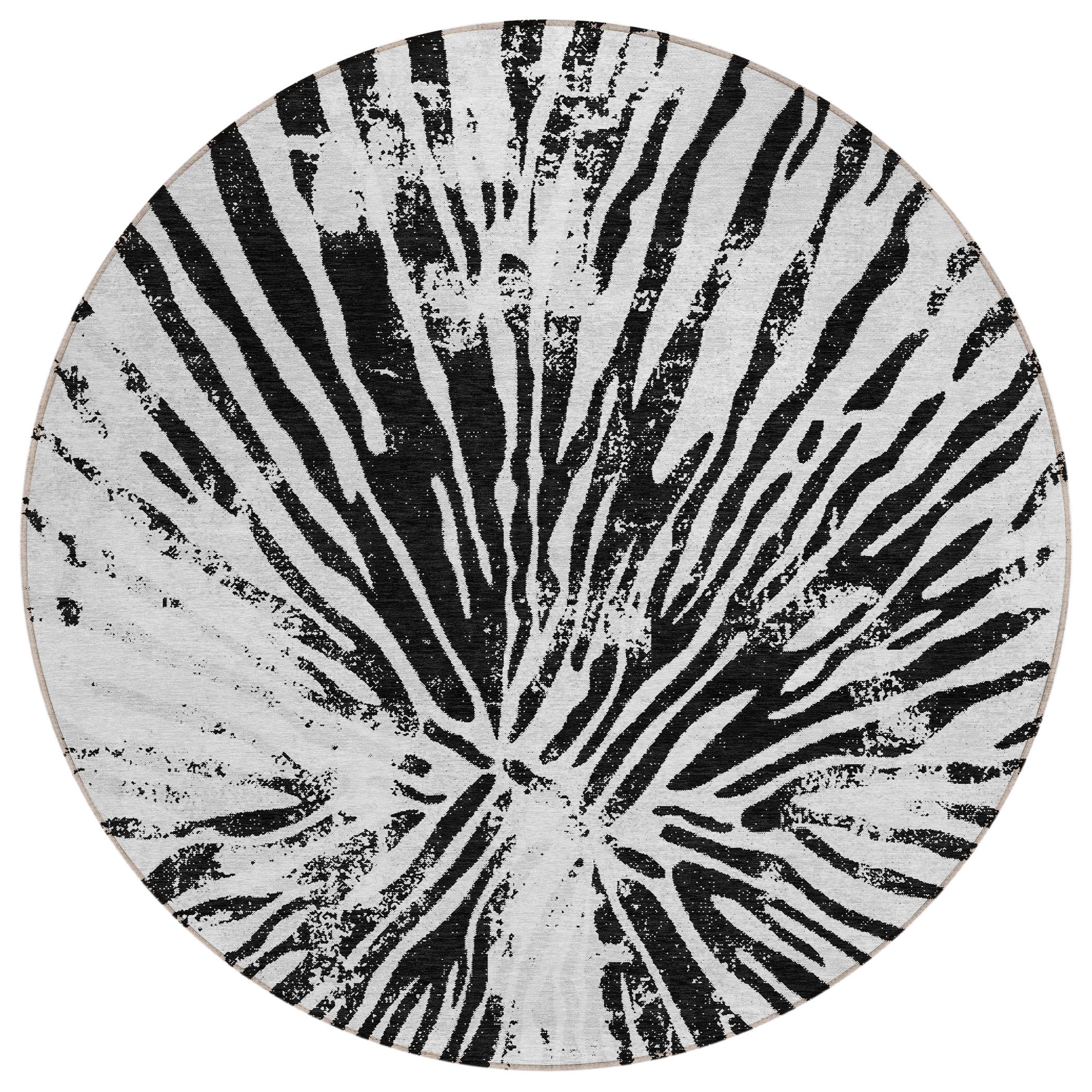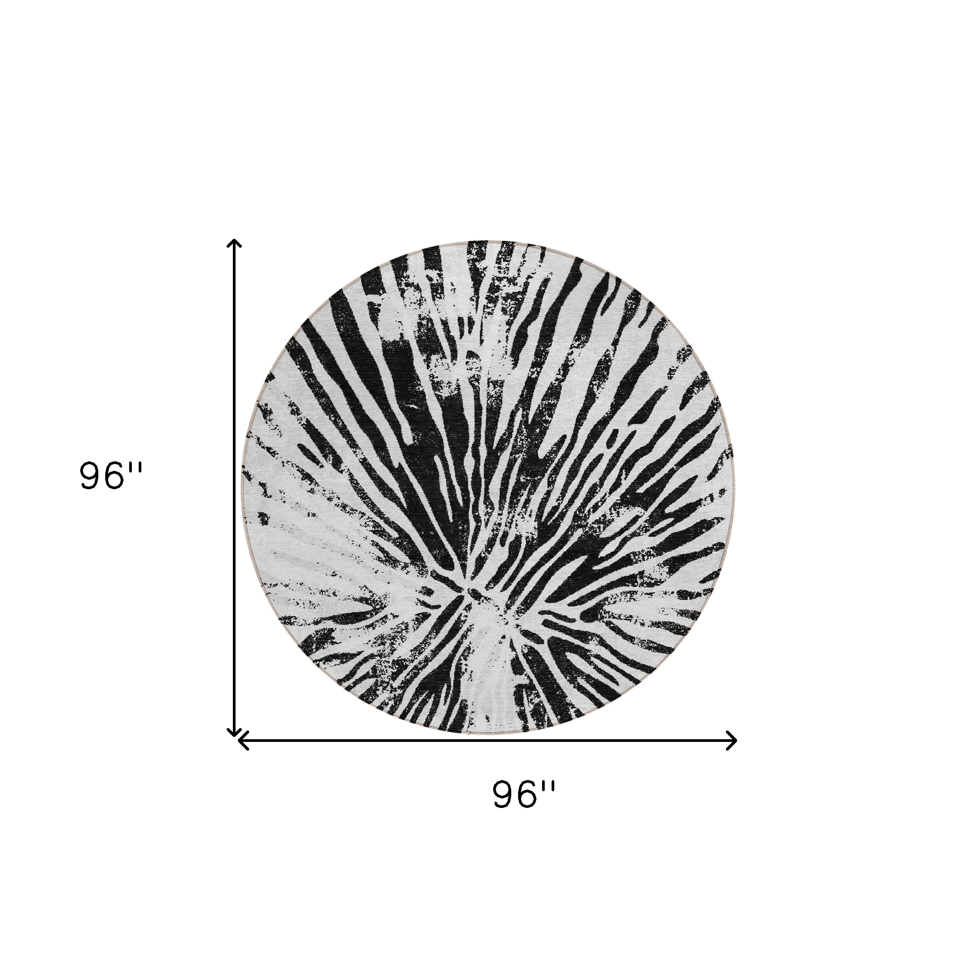 8' Ivory Black And Gray Round Abstract Washable Indoor Outdoor Area Rug