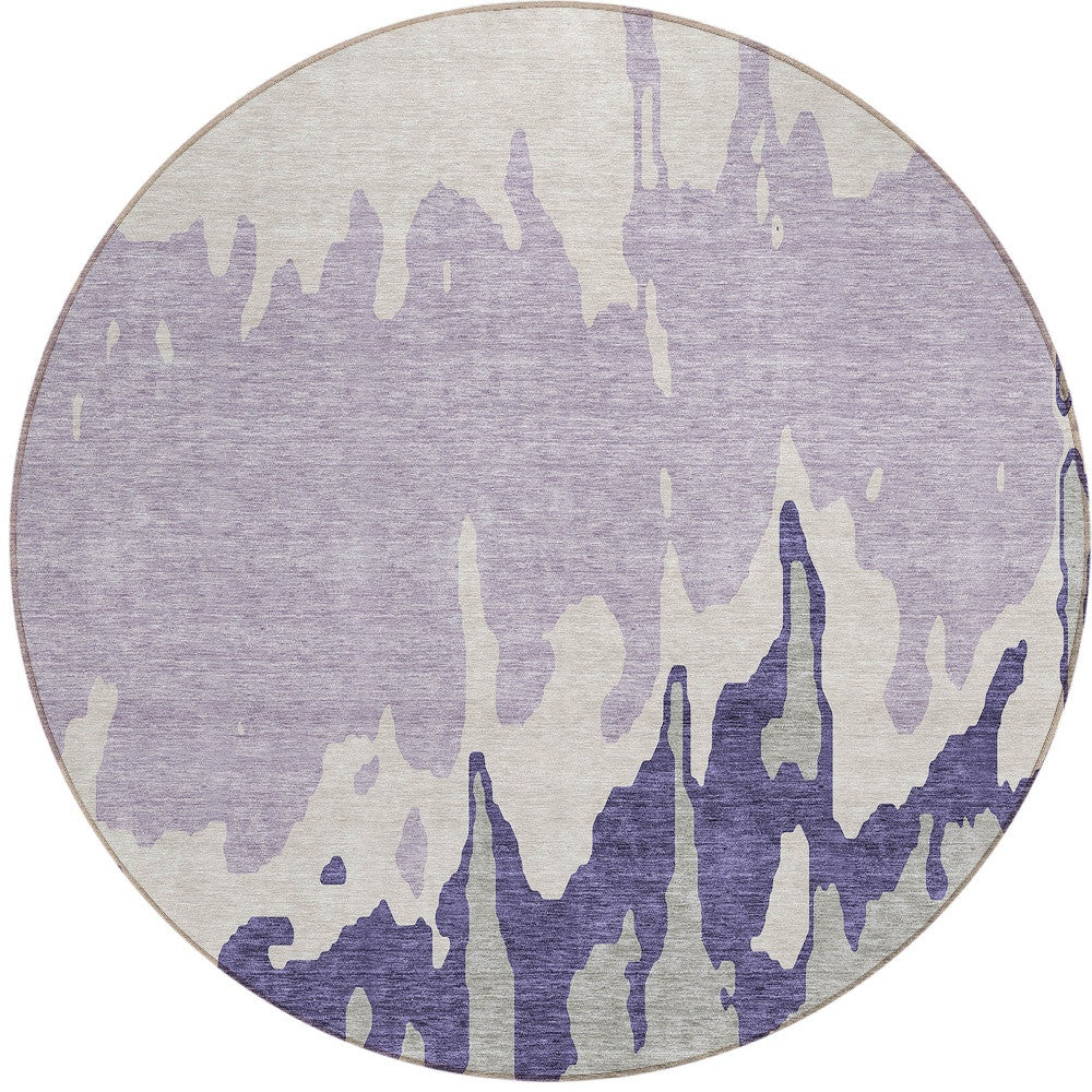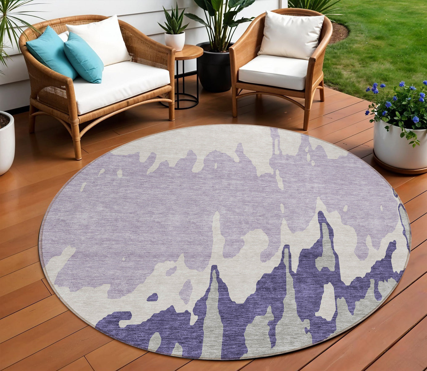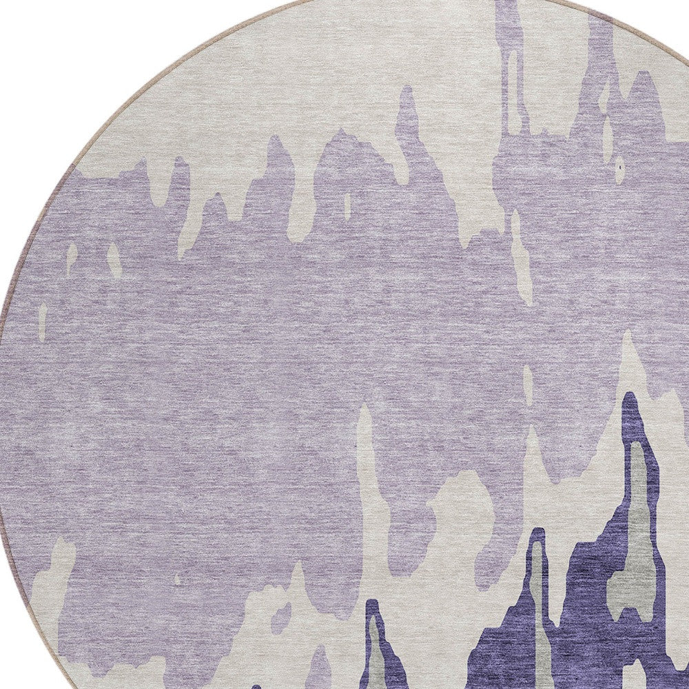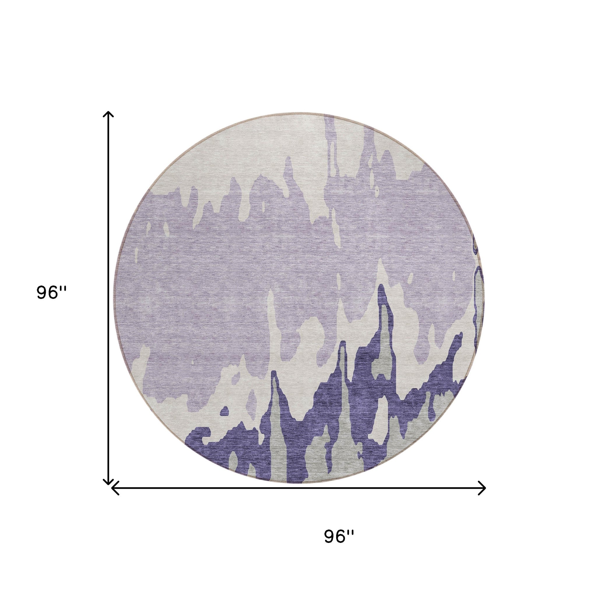8' Purple And Ivory Round Abstract Washable Indoor Outdoor Area Rug