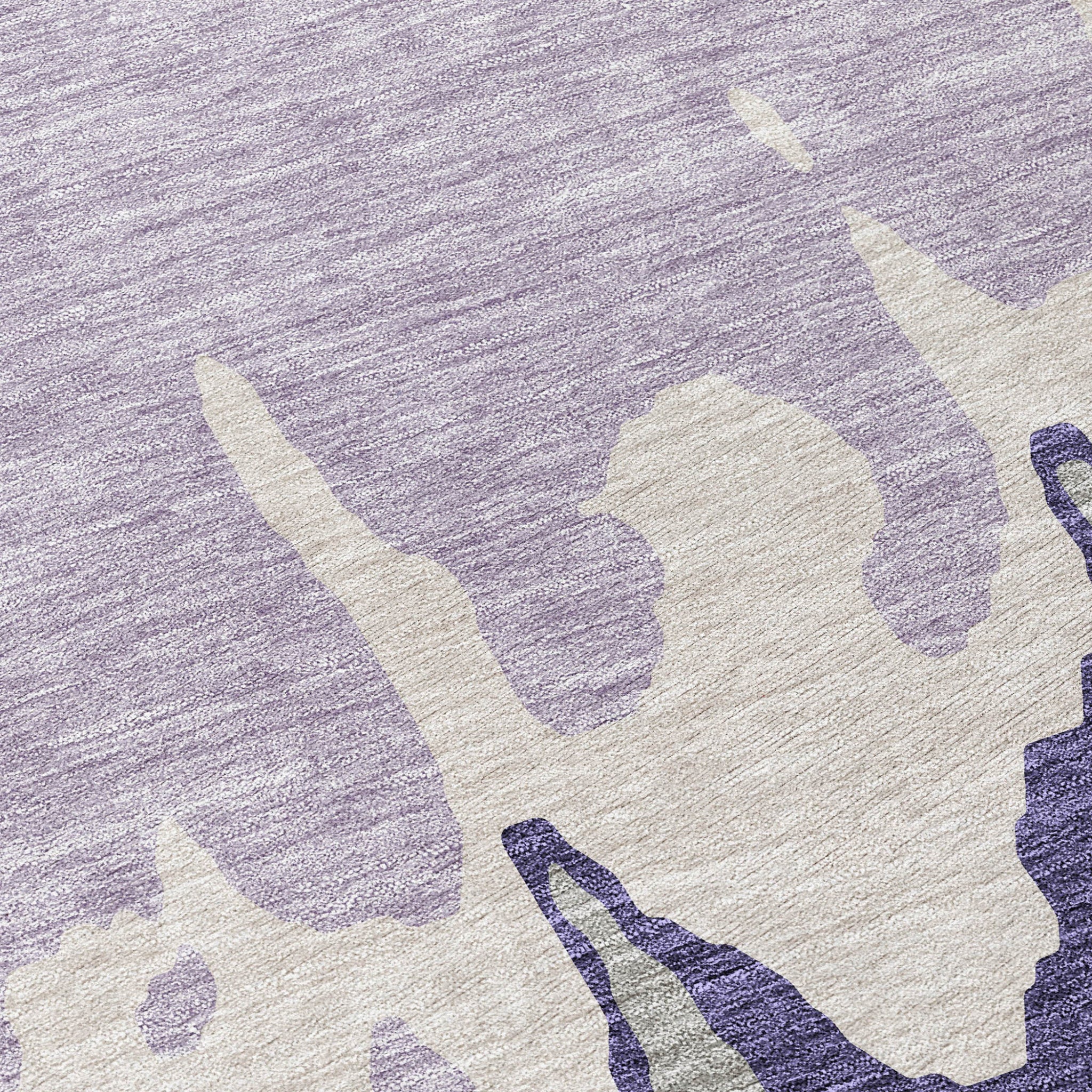 Set an inviting tone in your space with this 8-foot purple and ivory round abstract washable indoor outdoor area rug. This geometric round shaped rug features a abstract pattern in purple and ivory that combines a good looking print with a unique and updated shape. The mix of shape, color, and design gives this rug refreshing visual interest. Ideal for outdoor spaces or high traffic areas with kids and pets, this rug is made from heavy duty polyester that is stain resistant to help repel water, dirt, and stains. Makes a great way to dress up your patio, porch, or poolside, but also works well as a durable and easy to maintain option in the kitchen, family room, or mudroom. 96-inch h x 96-inch w x 0.19-inch d.