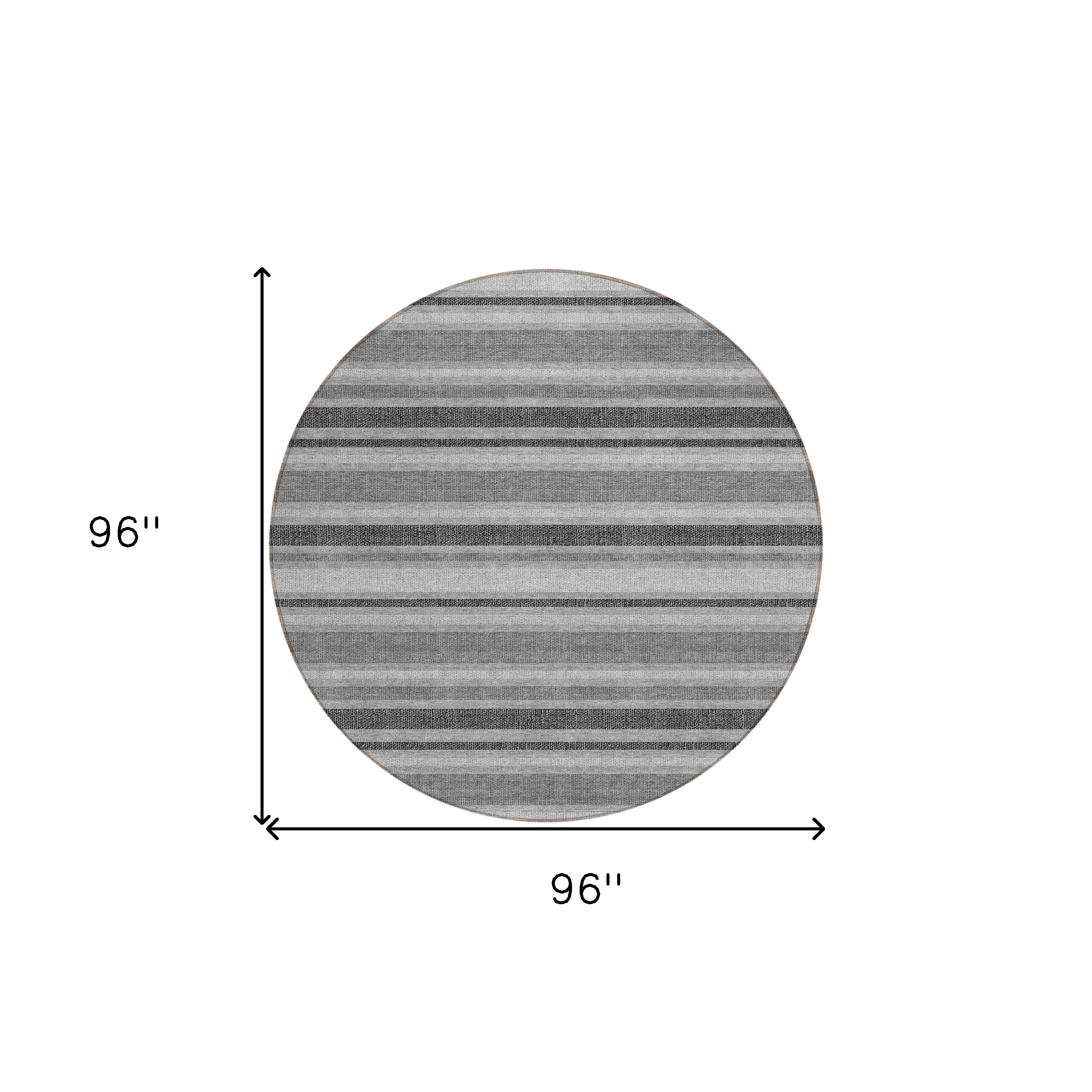 8' Round Gray and Black Round Striped Washable Non Skid Indoor Outdoor Area Rug