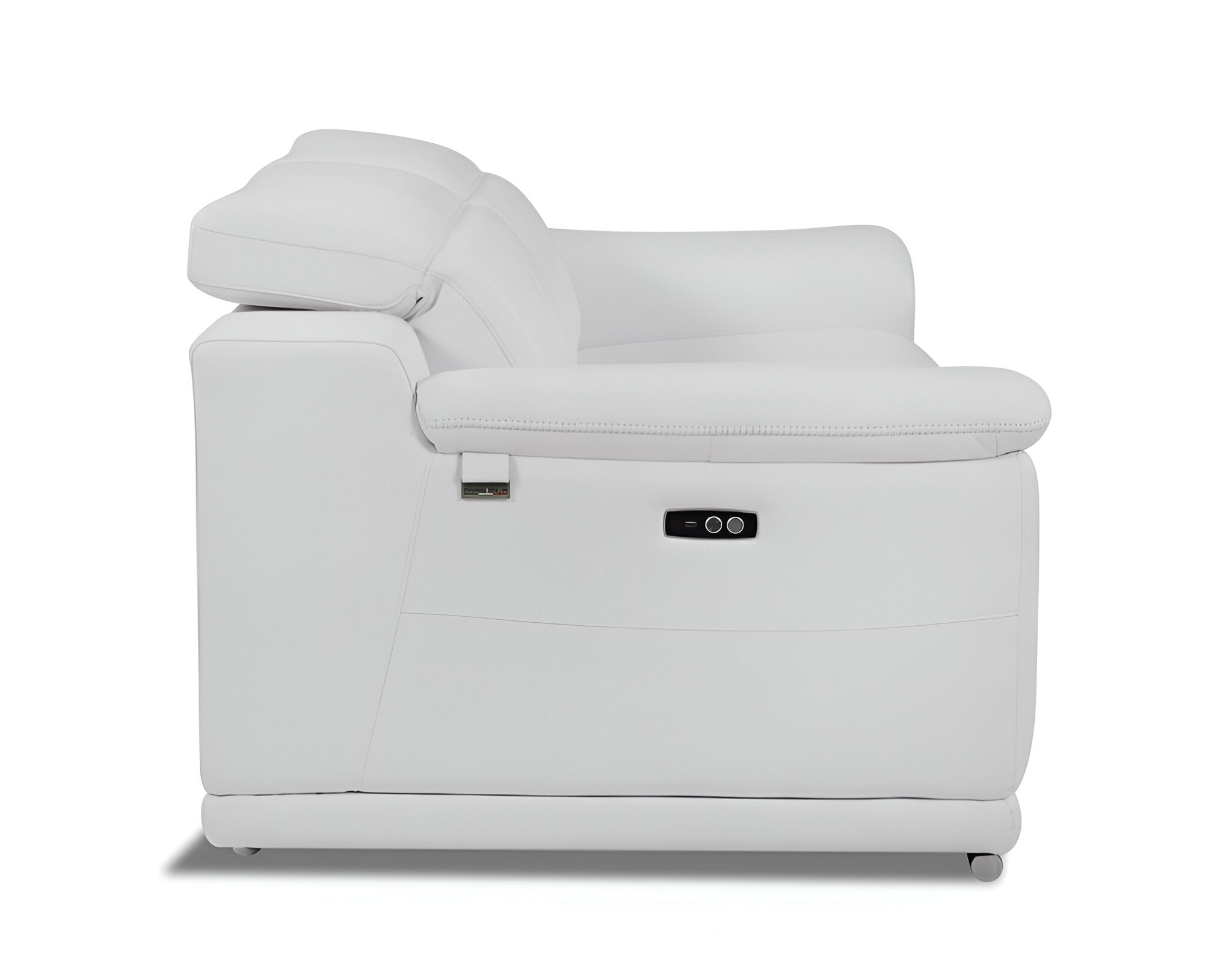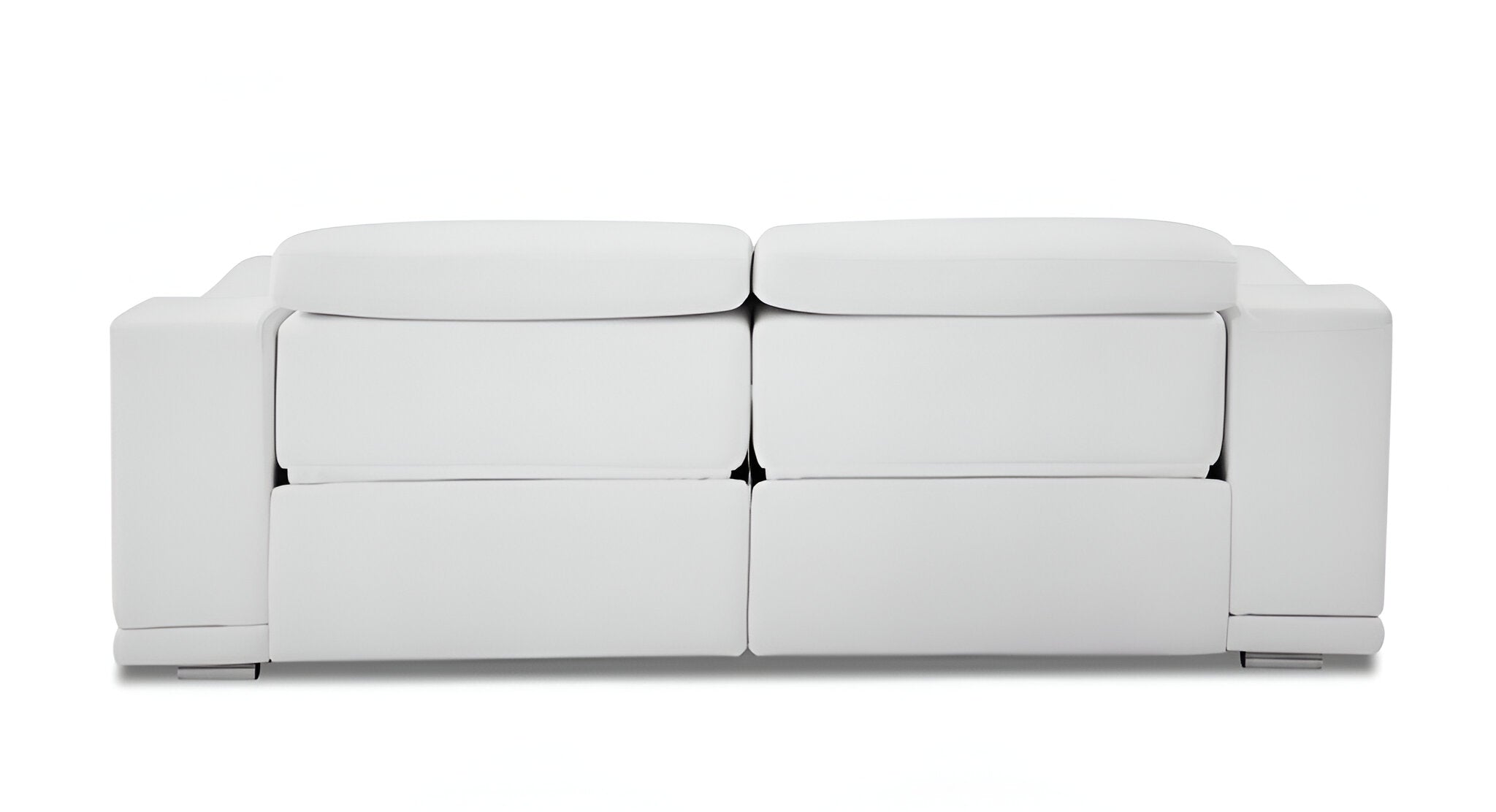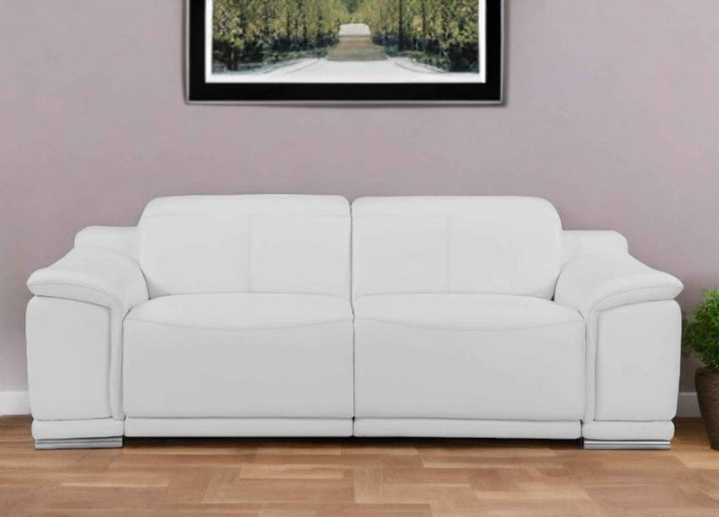 86" White Italian Leather USB Reclining Sofa With Silver Legs Vai al contenuto