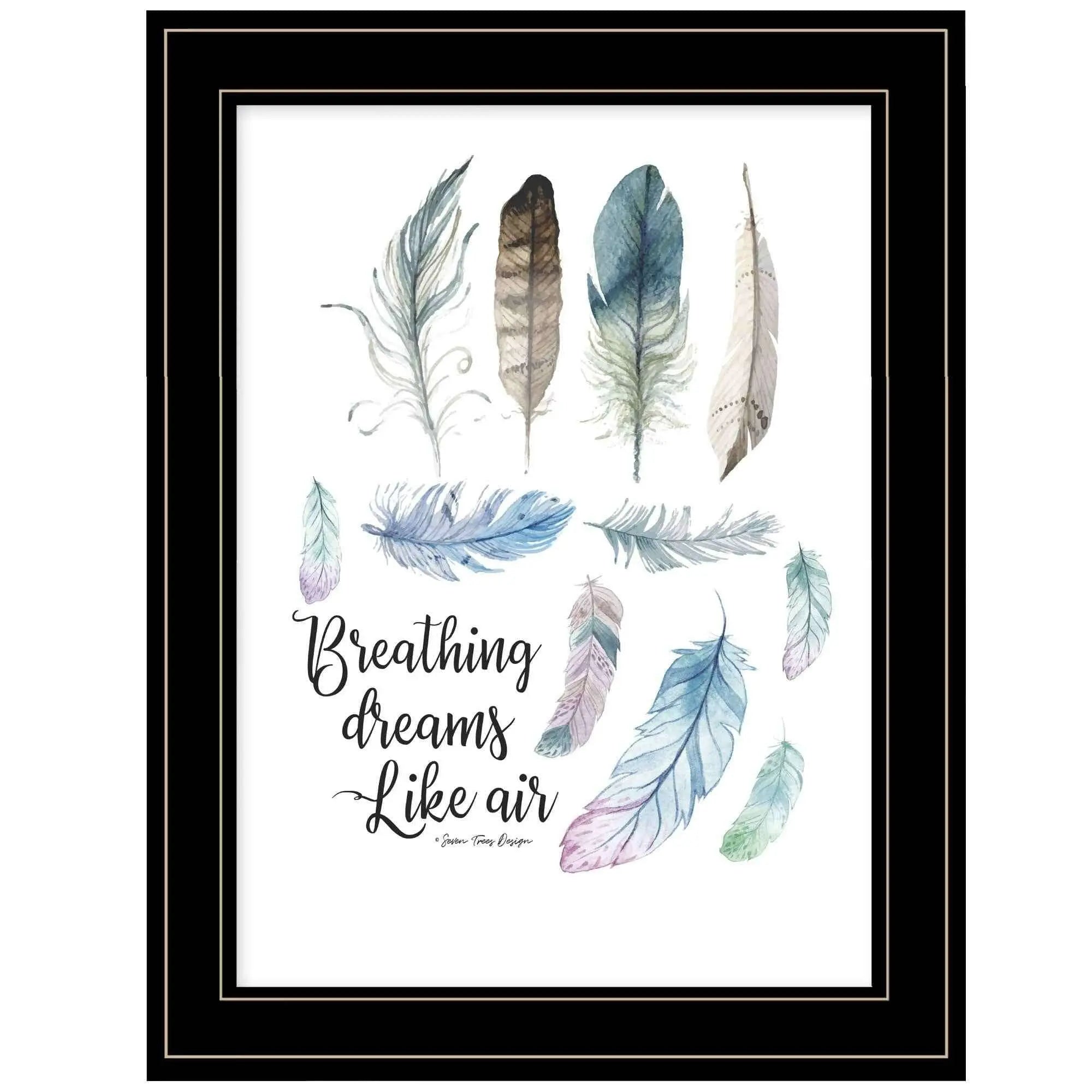 Unique and decorative, this breathing dreams like air 2 black framed print wall art will leave a lasting impression. This print is a visual artistic expression that allows you to decorate your space in style. Reproduced for you on paper, this hanging decorative accent will be a trendy and fashionable way to dress your walls. Adding this hanging wall art to your space to make your room feel more finished and attractive. Utilize this opportunity to create a focal point in the room with this fabulous wall decor option. 19 inches H x 15 inches W x 1 inches D