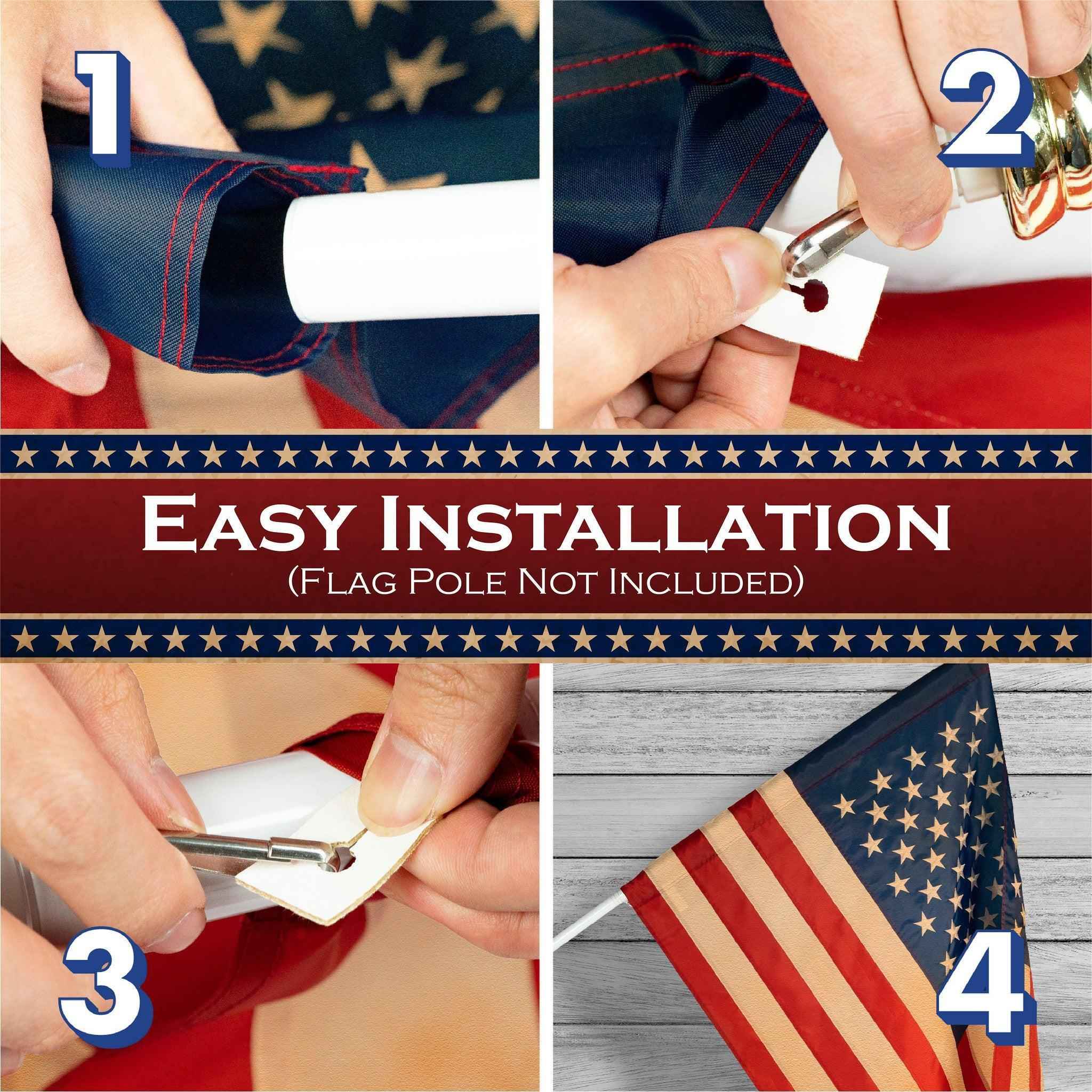 G128 5 Pack: American USA Tea-Stained Flag | 2.5x4 Ft | ToughWeave Pro Series Pole Sleeve Embroidered 420D Polyester | Embroidered Stars