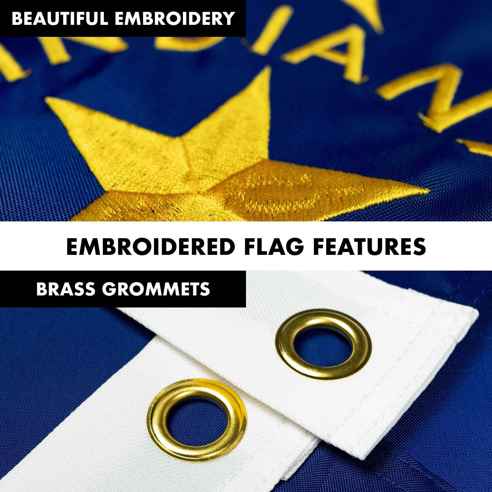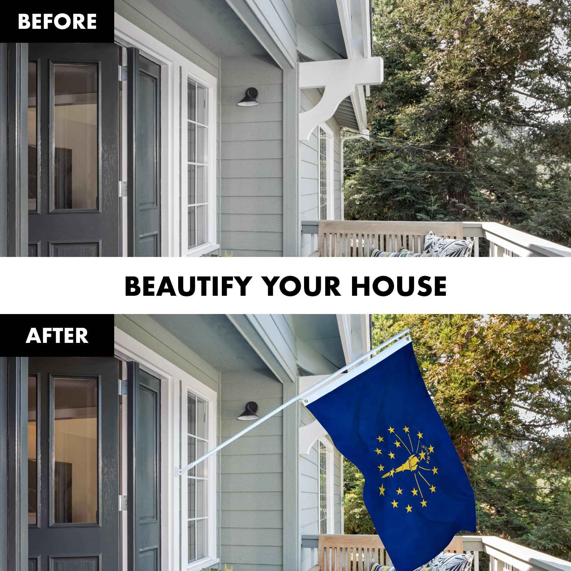G128 Combo Pack: 5 Ft Tangle Free Aluminum Spinning Flagpole (White) & Indiana IN State Flag 2.5x4 Ft, ToughWeave Series Embroidered 300D Polyester | Pole with Flag Included