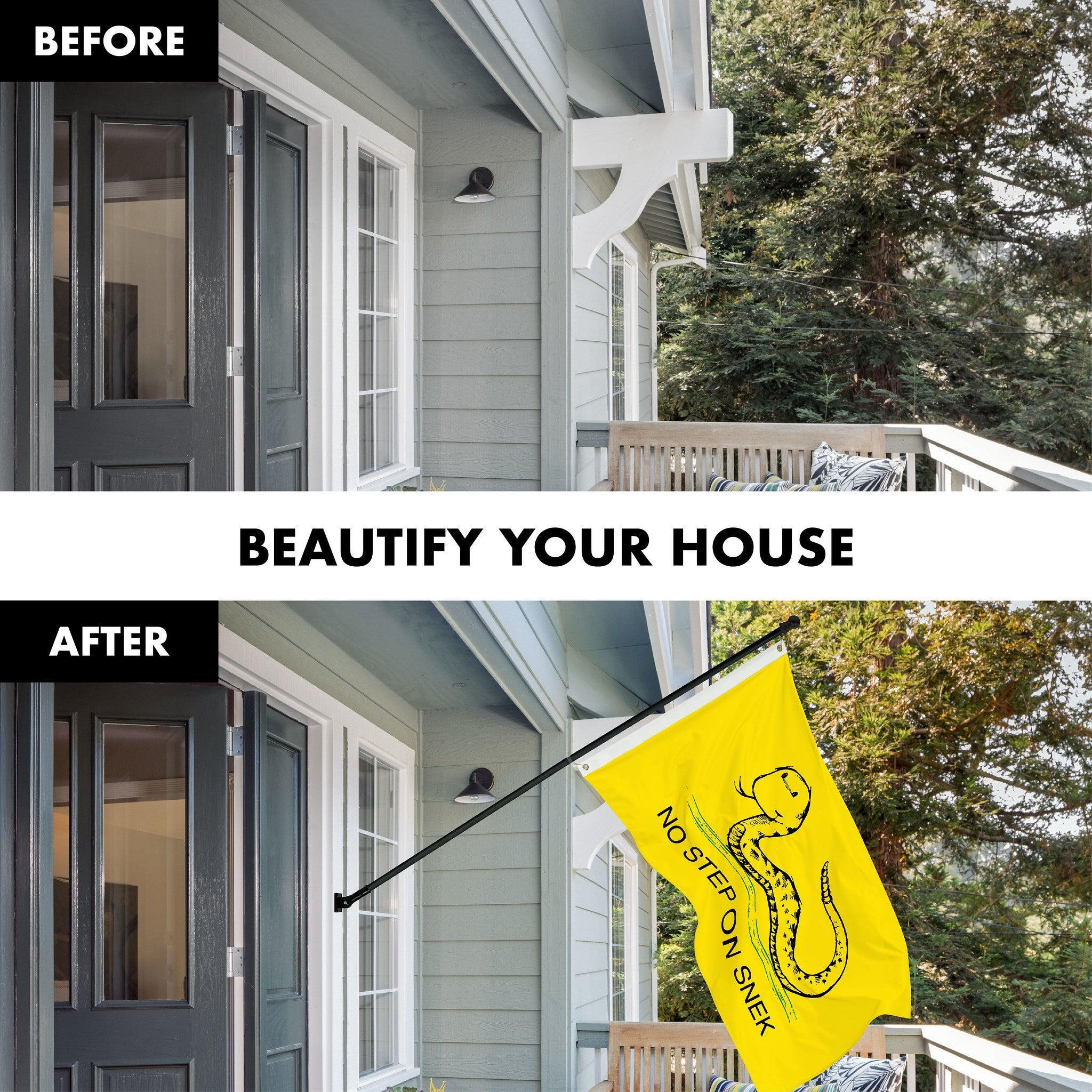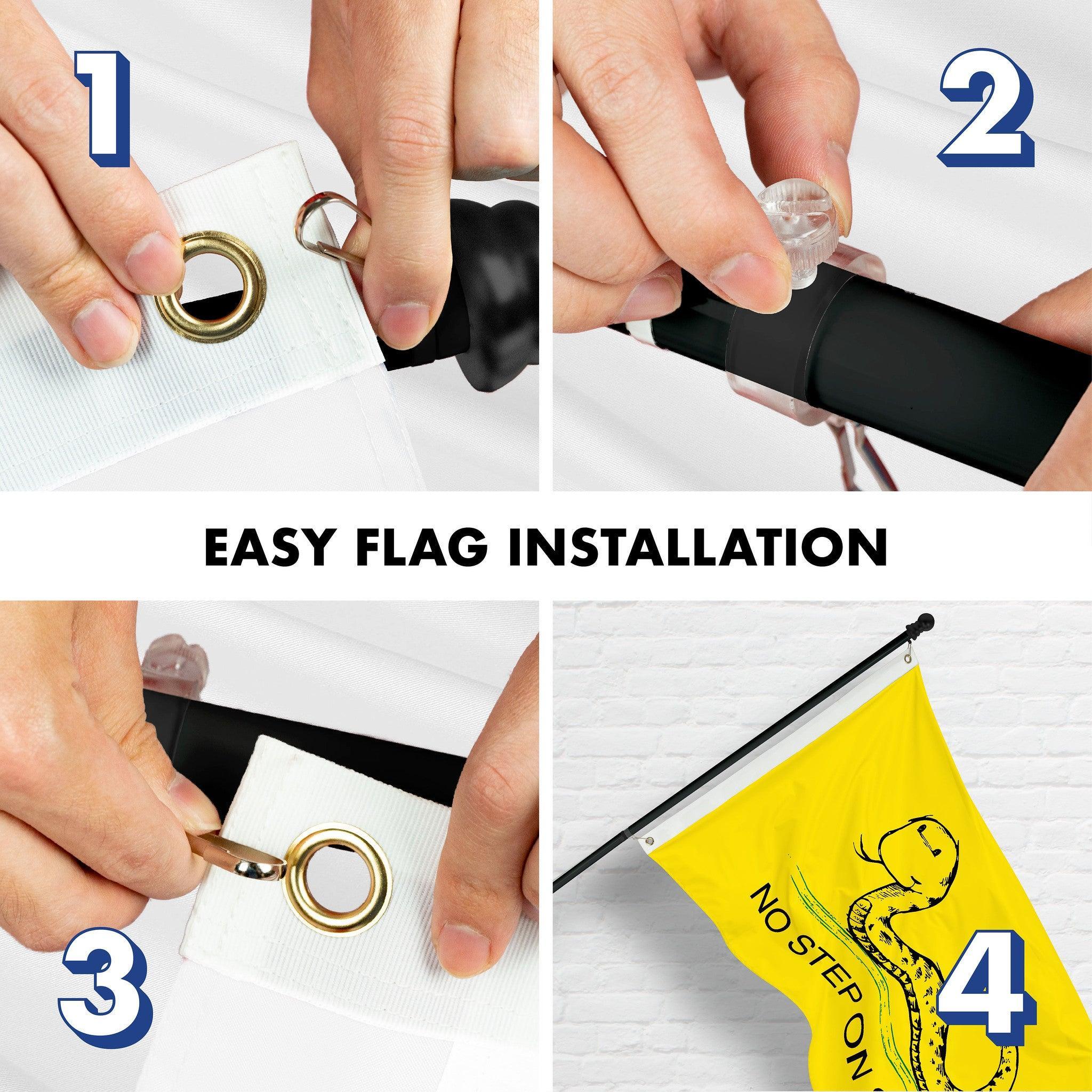 G128 Combo Pack: 6 Ft Tangle Free Spinning Flagpole (Black) & No Step on Snek Cute Cartoon Flag 3x5 Ft Printed 150D Polyester, Brass Grommets (Flag Included) Aluminum Flag Pole