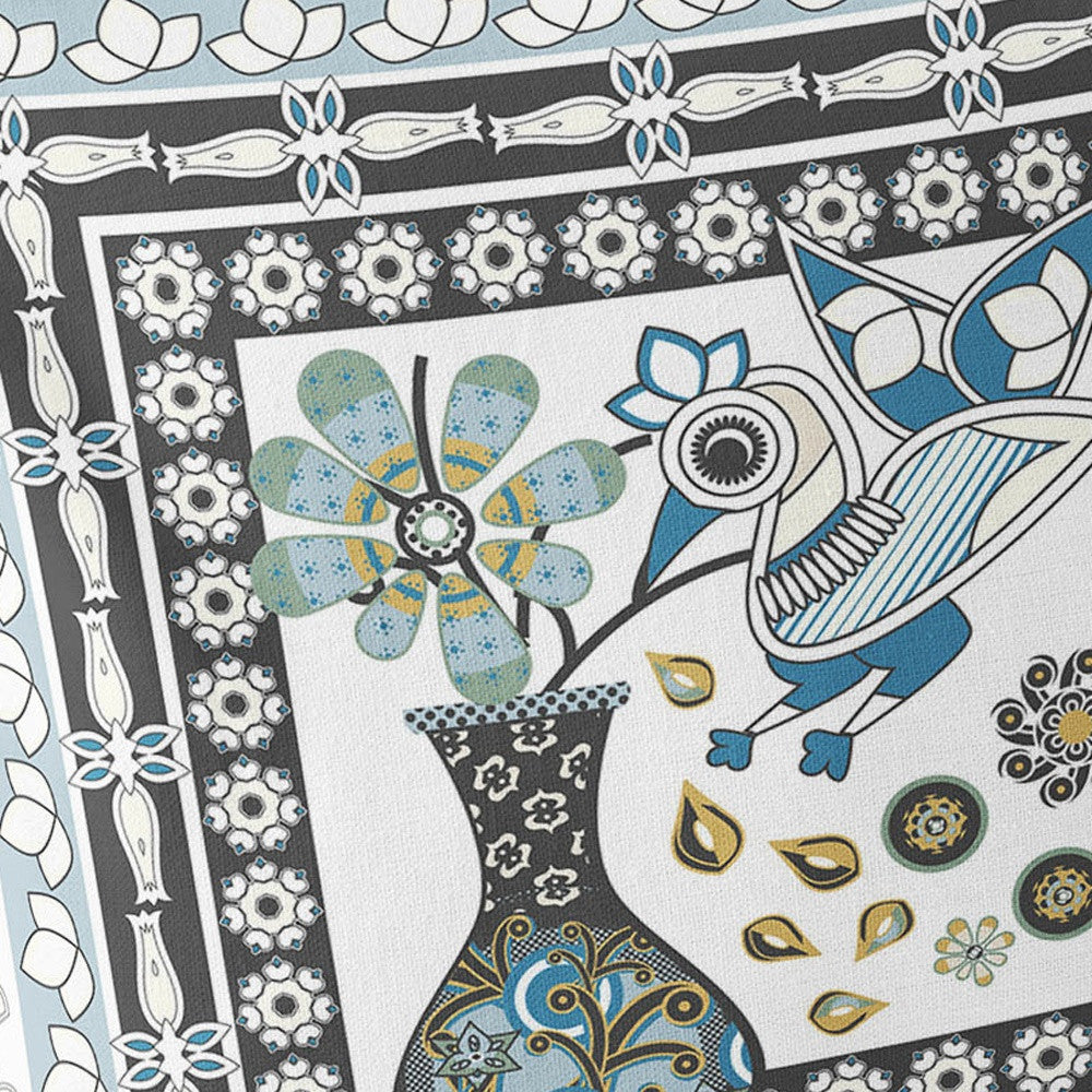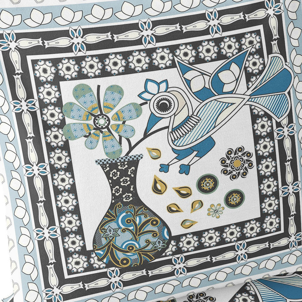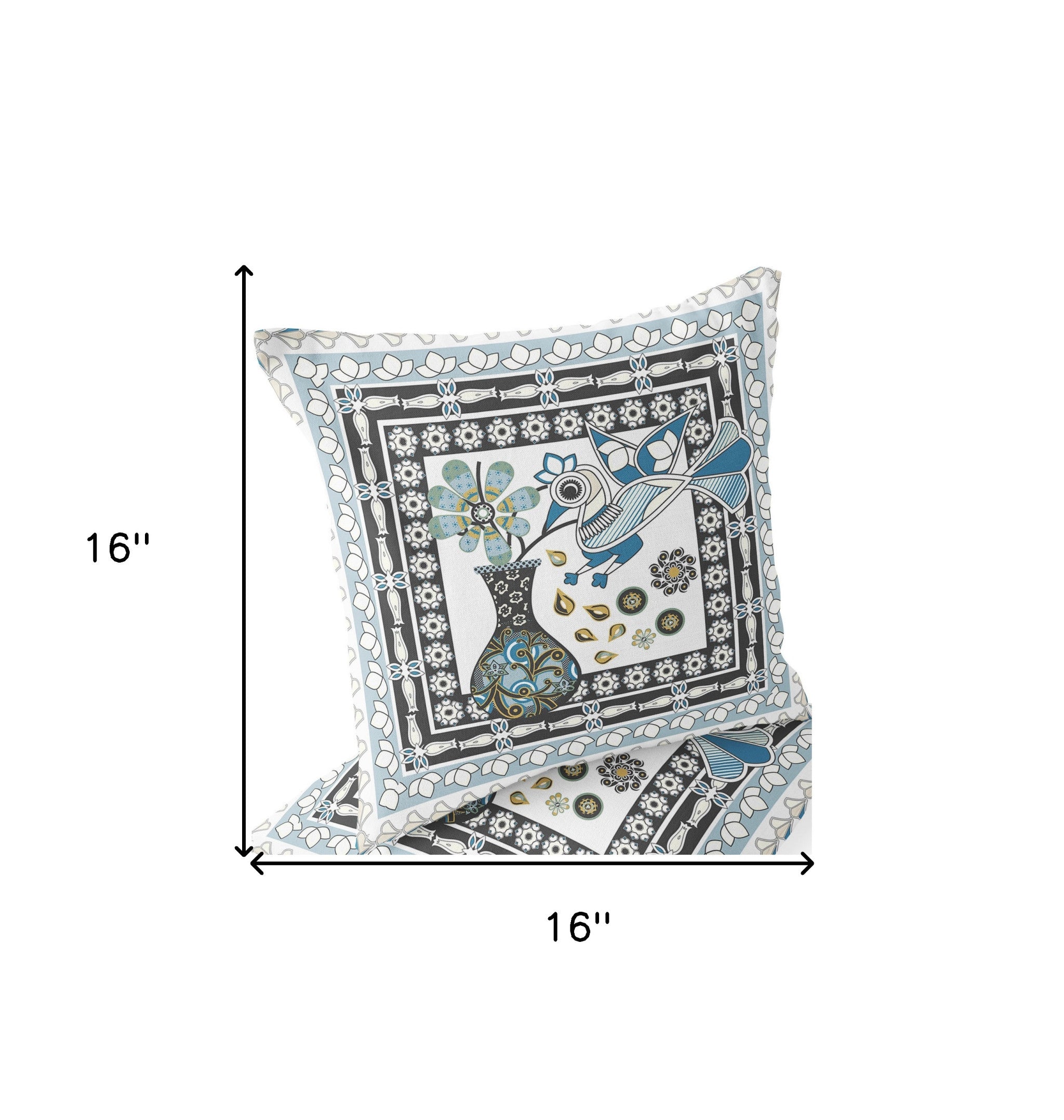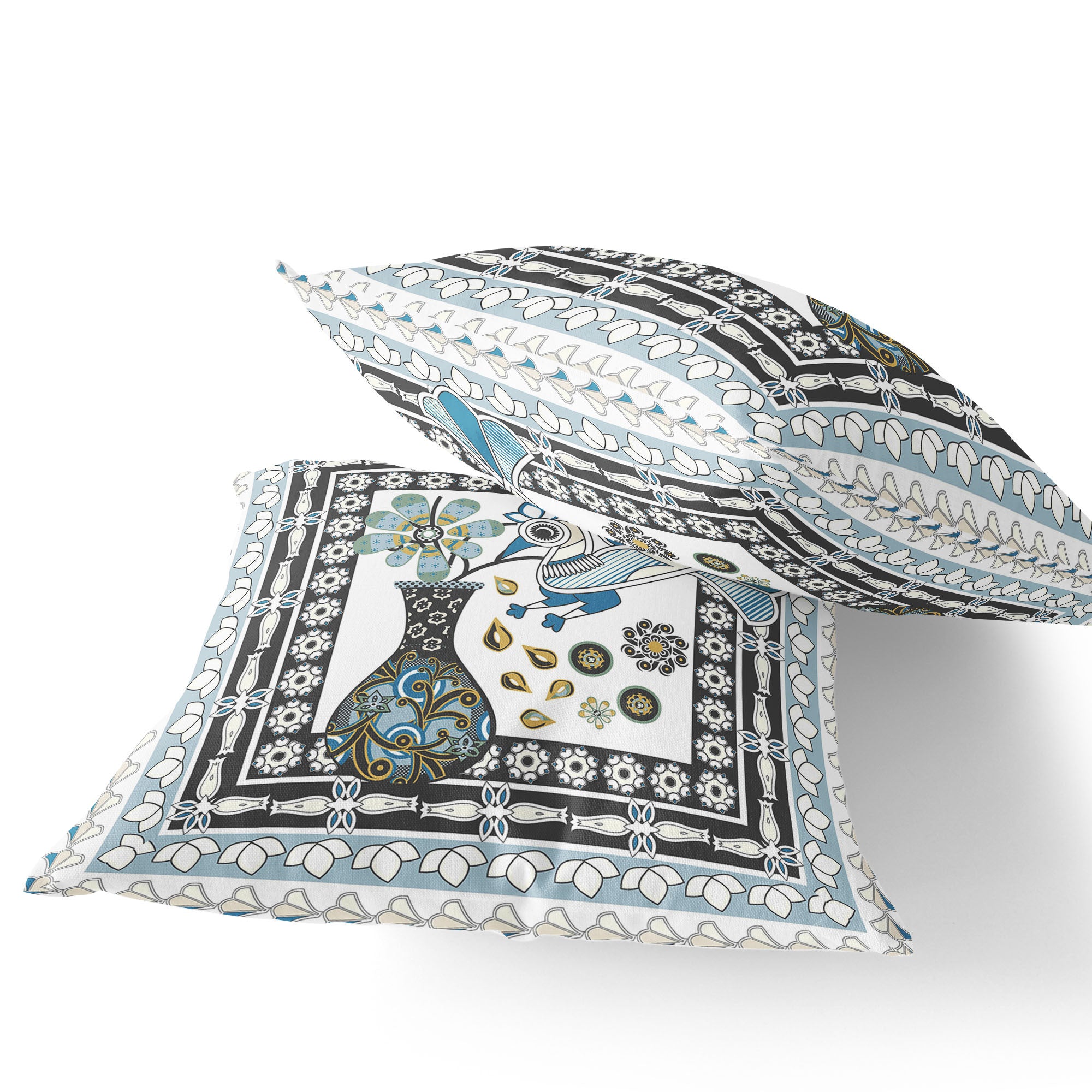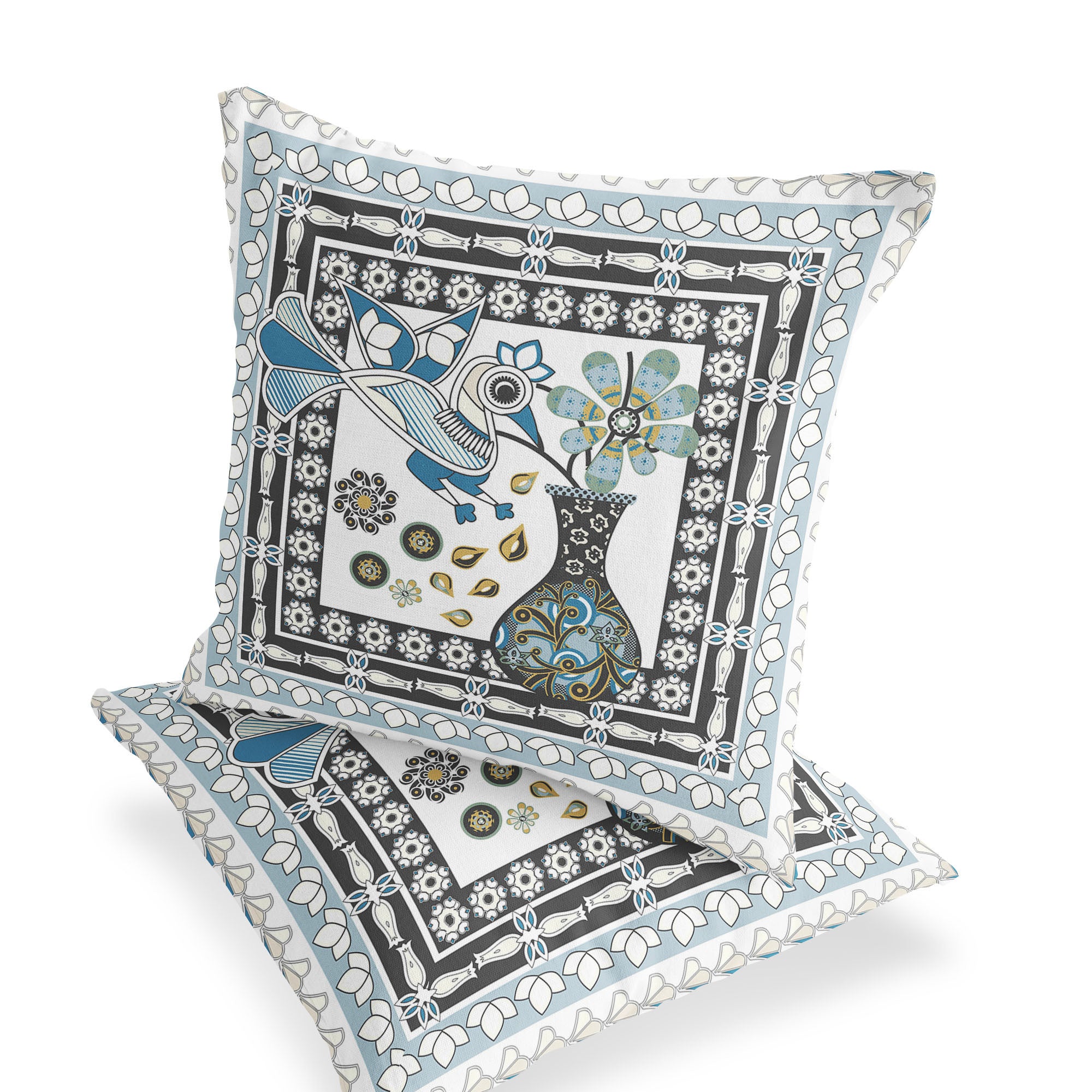 Set of Two 16" X 16" Black and White Peacock Blown Seam Floral Indoor Outdoor Throw Pillow