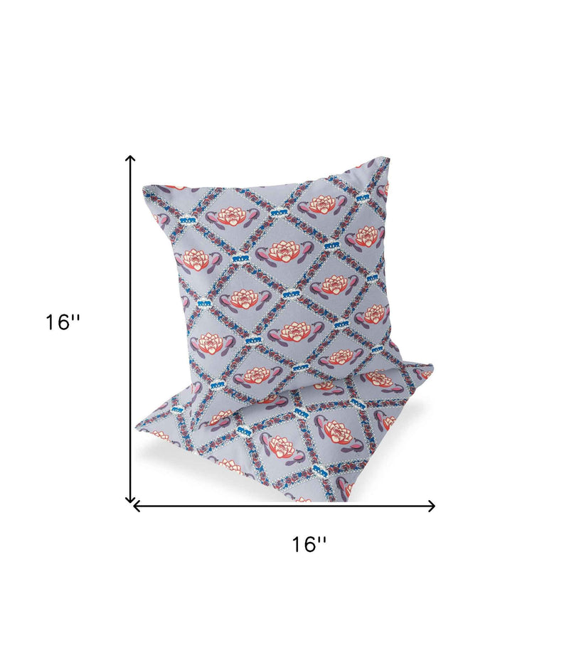 Set of Two 16" X 16" Blue and Gray Peacock Blown Seam Floral Indoor Outdoor Throw Pillow