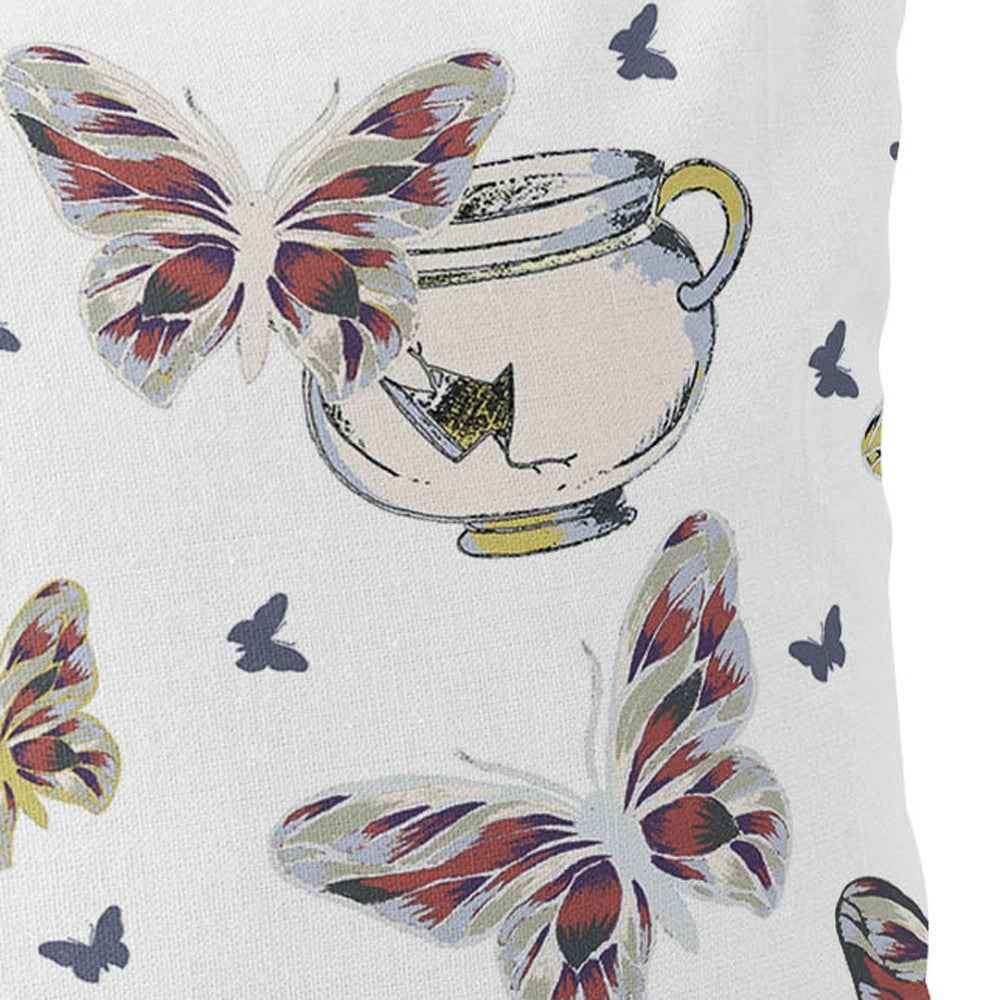 Set of Two 16" X 16" Blue and White Butterfly Blown Seam Animal Print Indoor Outdoor Throw Pillow