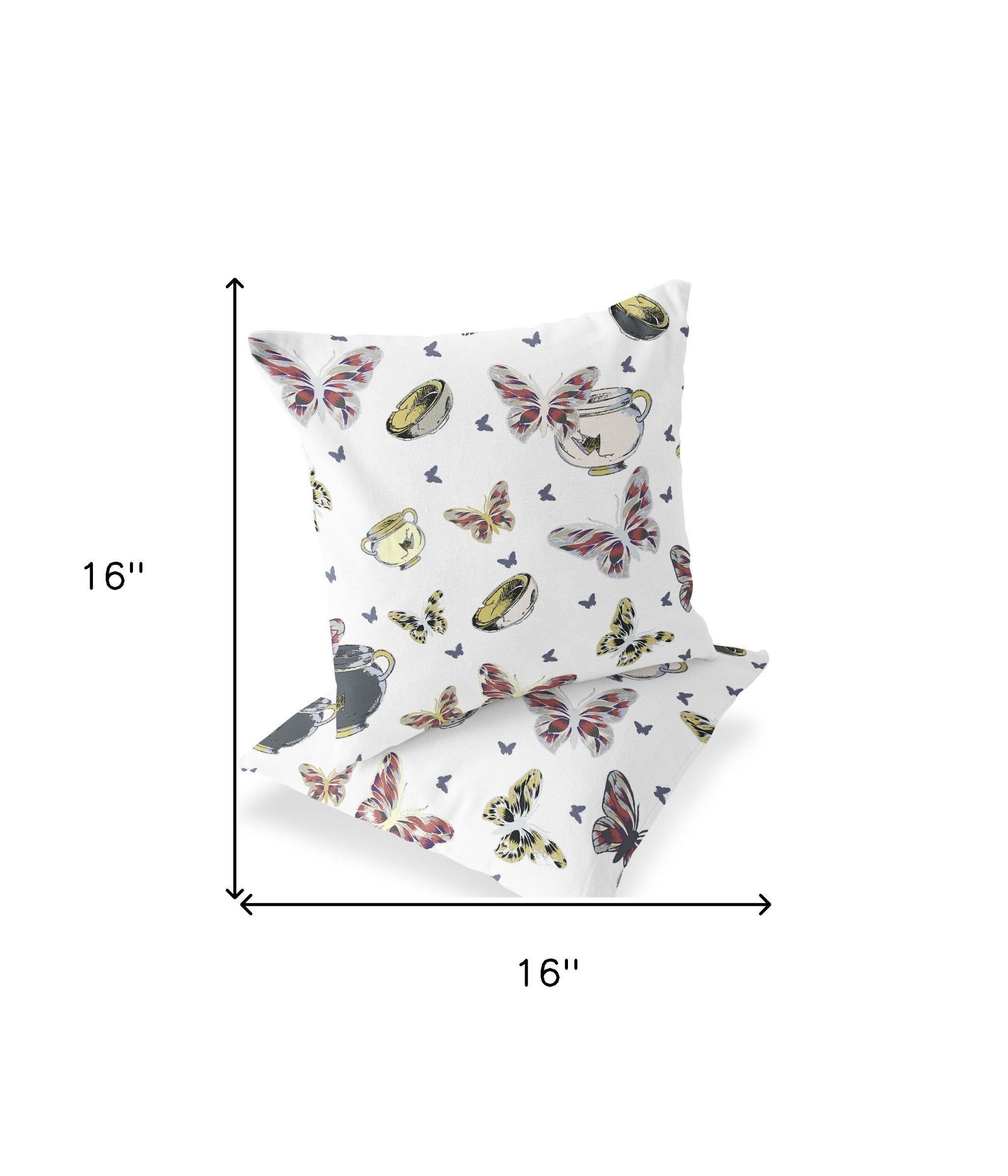 Add an air of fashion to your room and rejuvenate the space with this cute and fashionable set of two 16-inch x 16-inch blue and white butterfly blown seam animal print indoor outdoor throw pillow. These great looking soft decorative pillows are expertly made of durable and long lasting polyester in a blue and white coloration. Will add some color and dimension to your space indoors or out. Decorative throw pillows add some pizazz but can also be comfy and supportive when you are lounging. 16-inch H x 16-inch W x 5-inch D