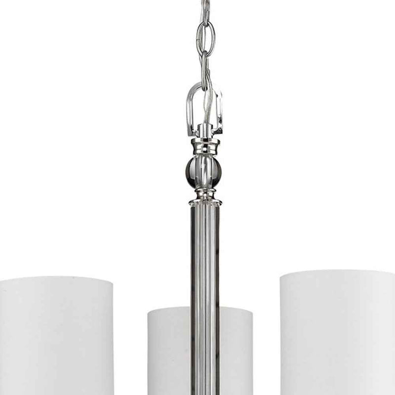 Silver Candle Style Three Light Metal and Crystals Dimmable Chandelier With White Shades Vai al contenuto