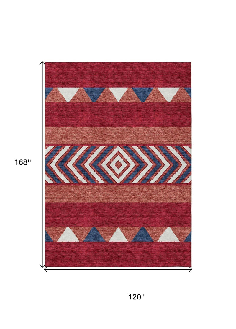 10' X 14' Red White And Navy Blue Southwestern Washable Indoor Outdoor Area Rug