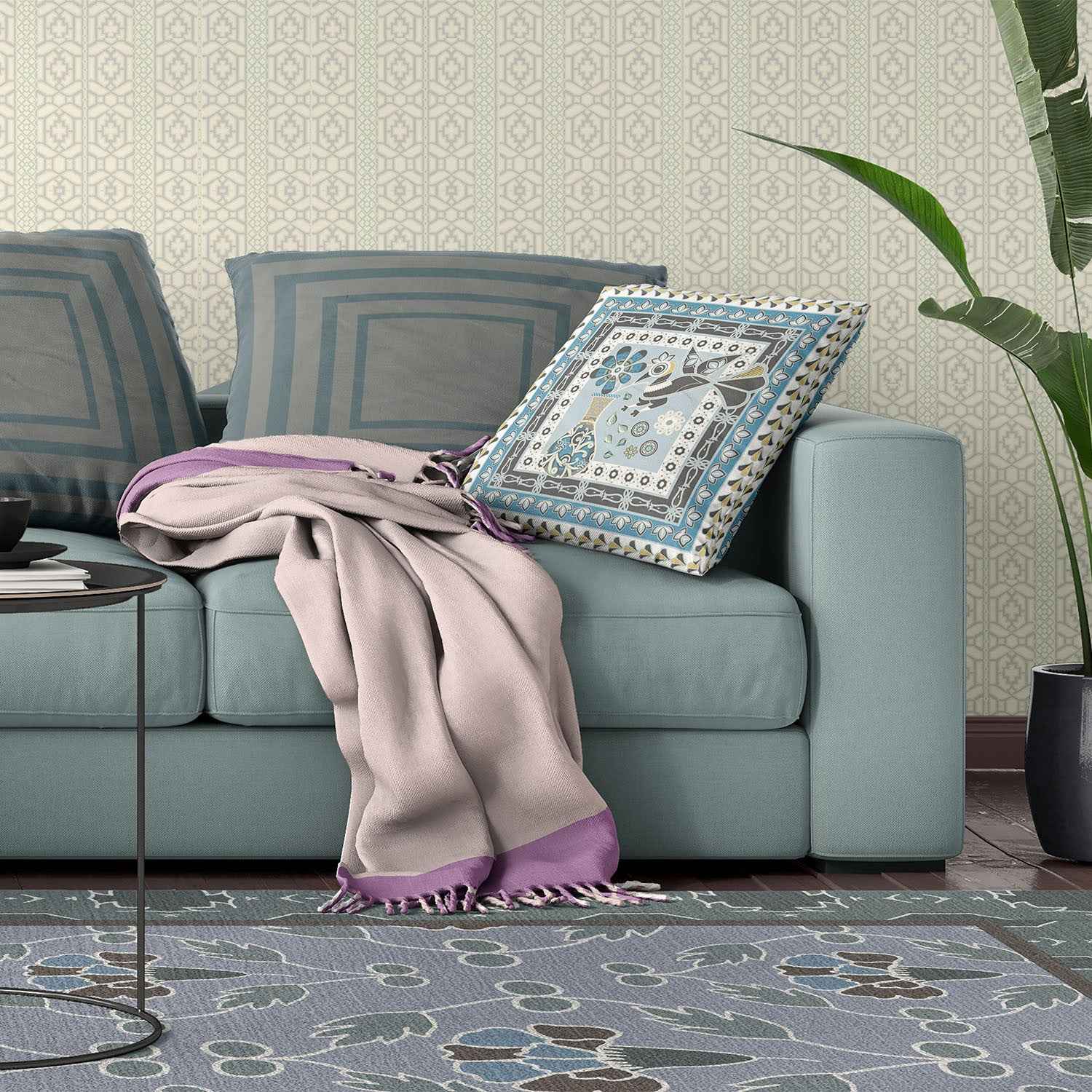 26" x 26" Blue and White Peacock Blown Seam Floral Indoor Outdoor Throw Pillow