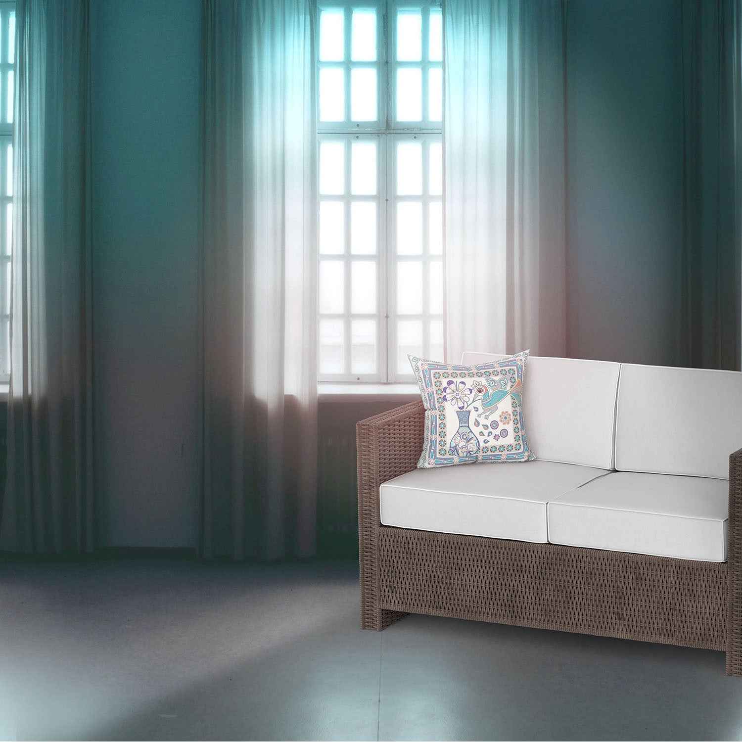 26" x 26" Off White Peacock Blown Seam Floral Indoor Outdoor Throw Pillow