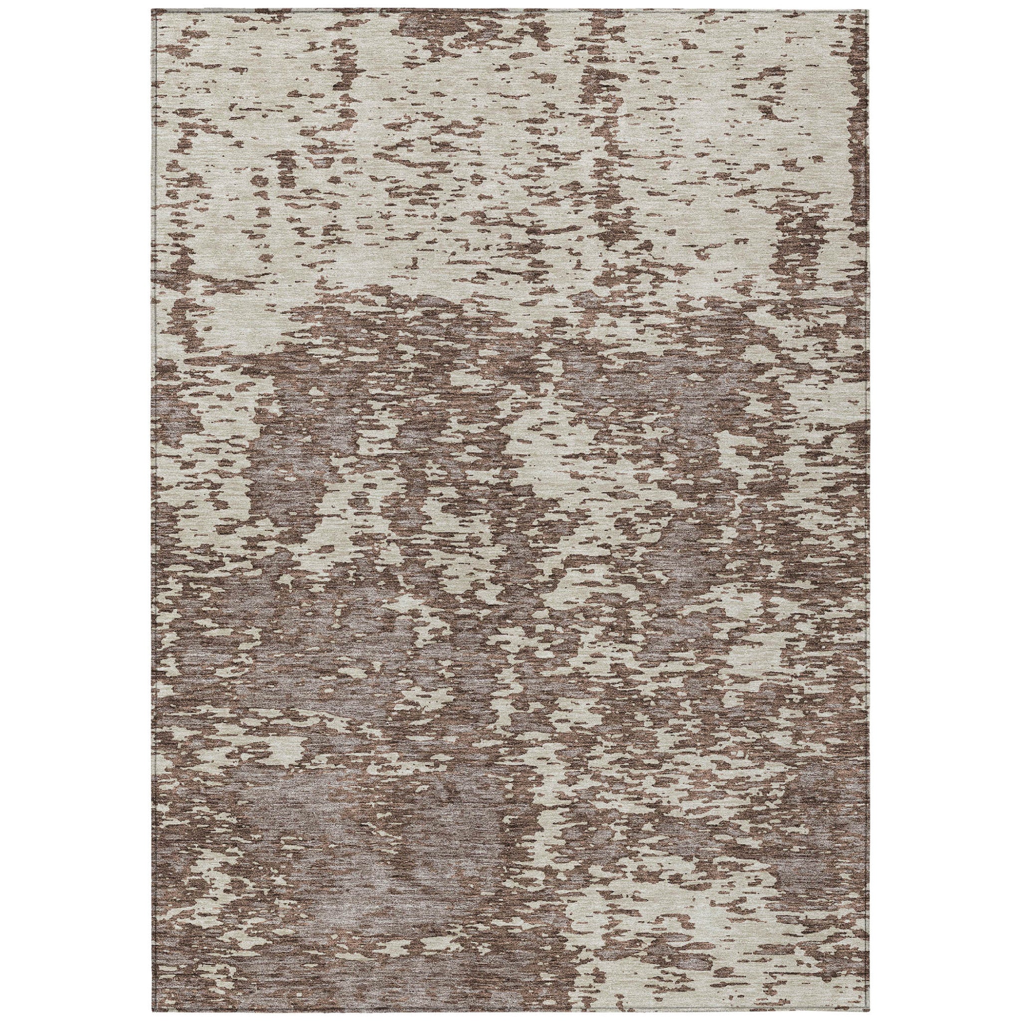 3' X 5' Brown And Ivory Abstract Washable Indoor Outdoor Area Rug