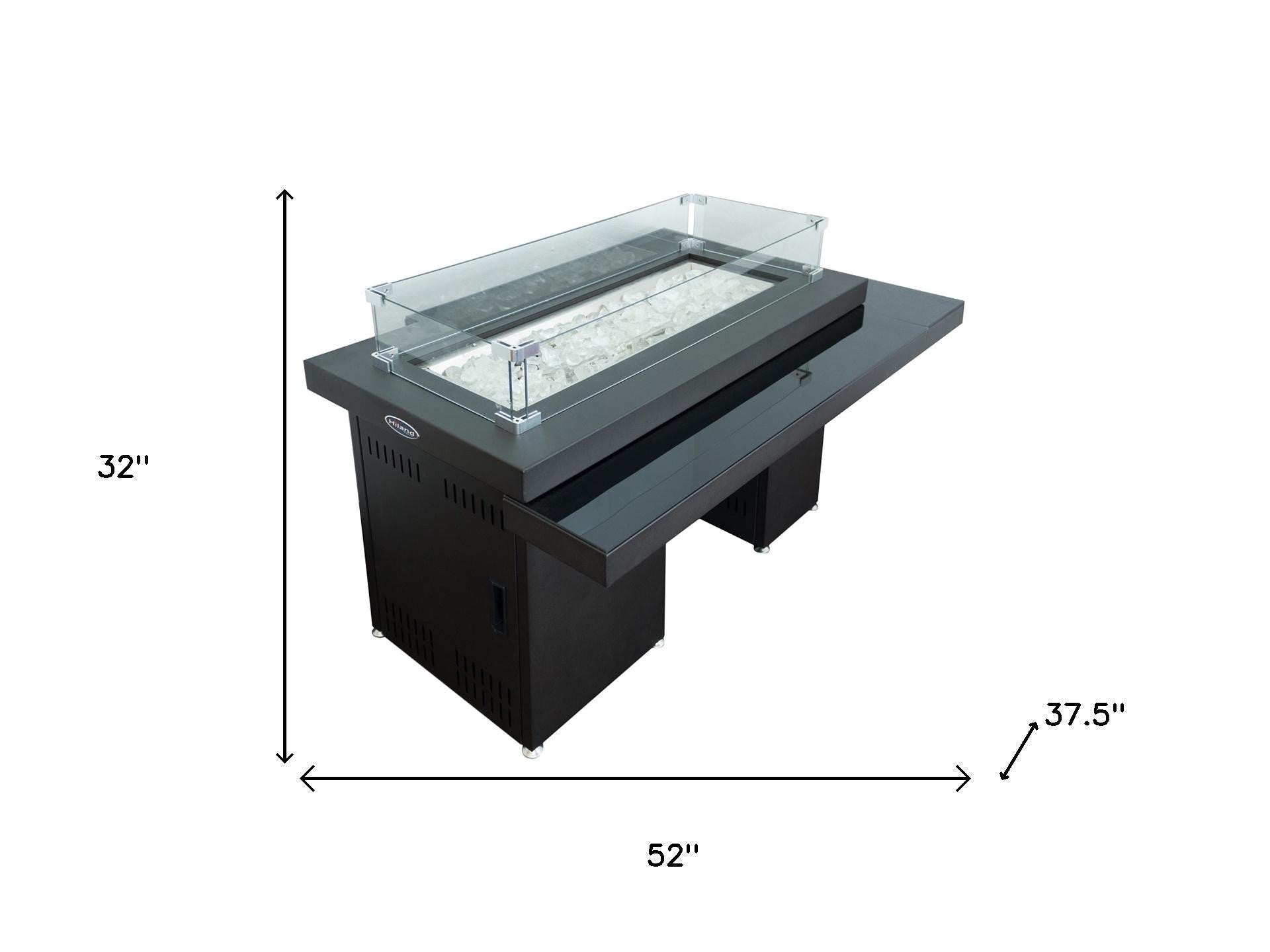 50000 BTU 52" Black And Clear Glass, Steel Propane Rectangular Fire pit table With Cover