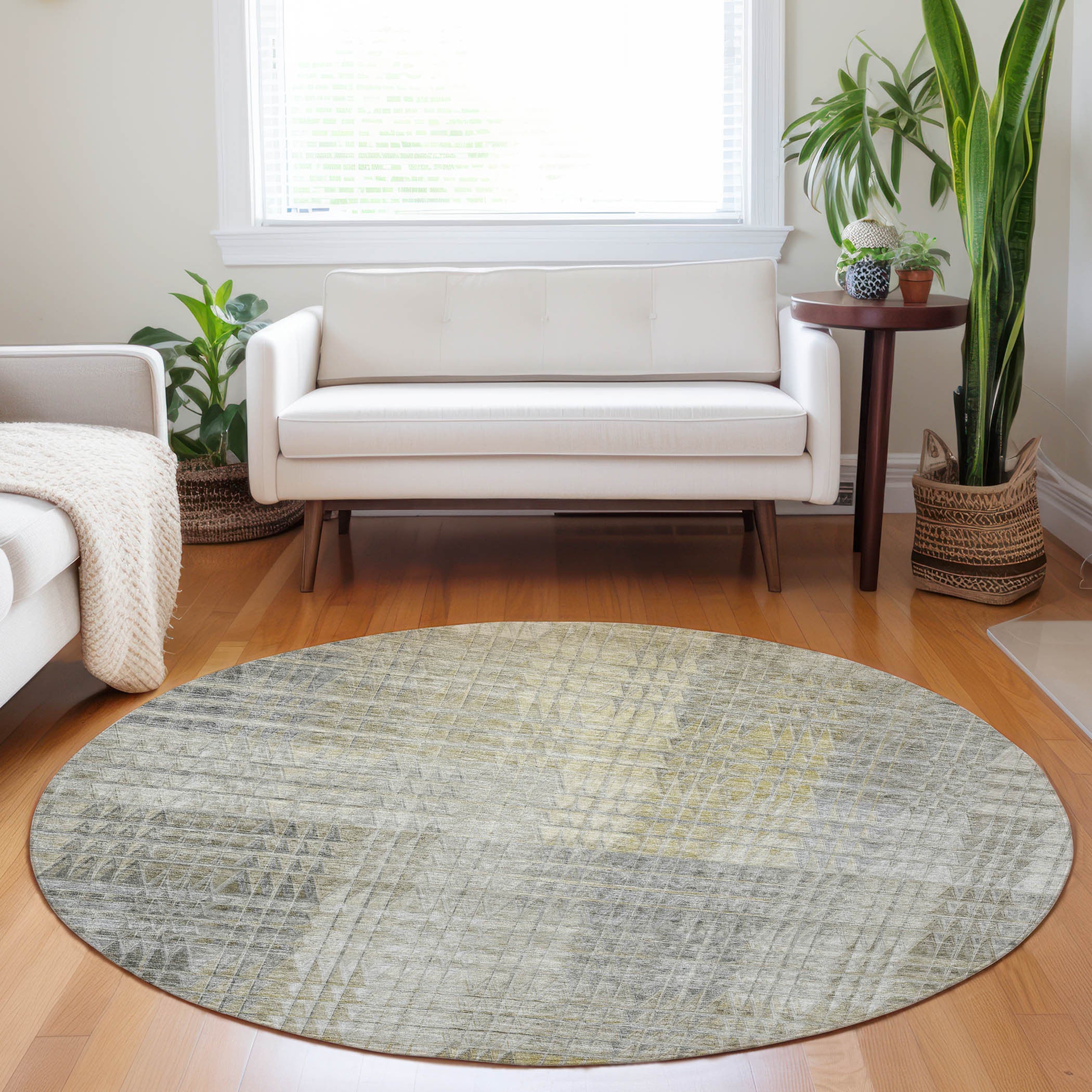 8' Taupe Beige And Brown Round Abstract Washable Indoor Outdoor Area Rug