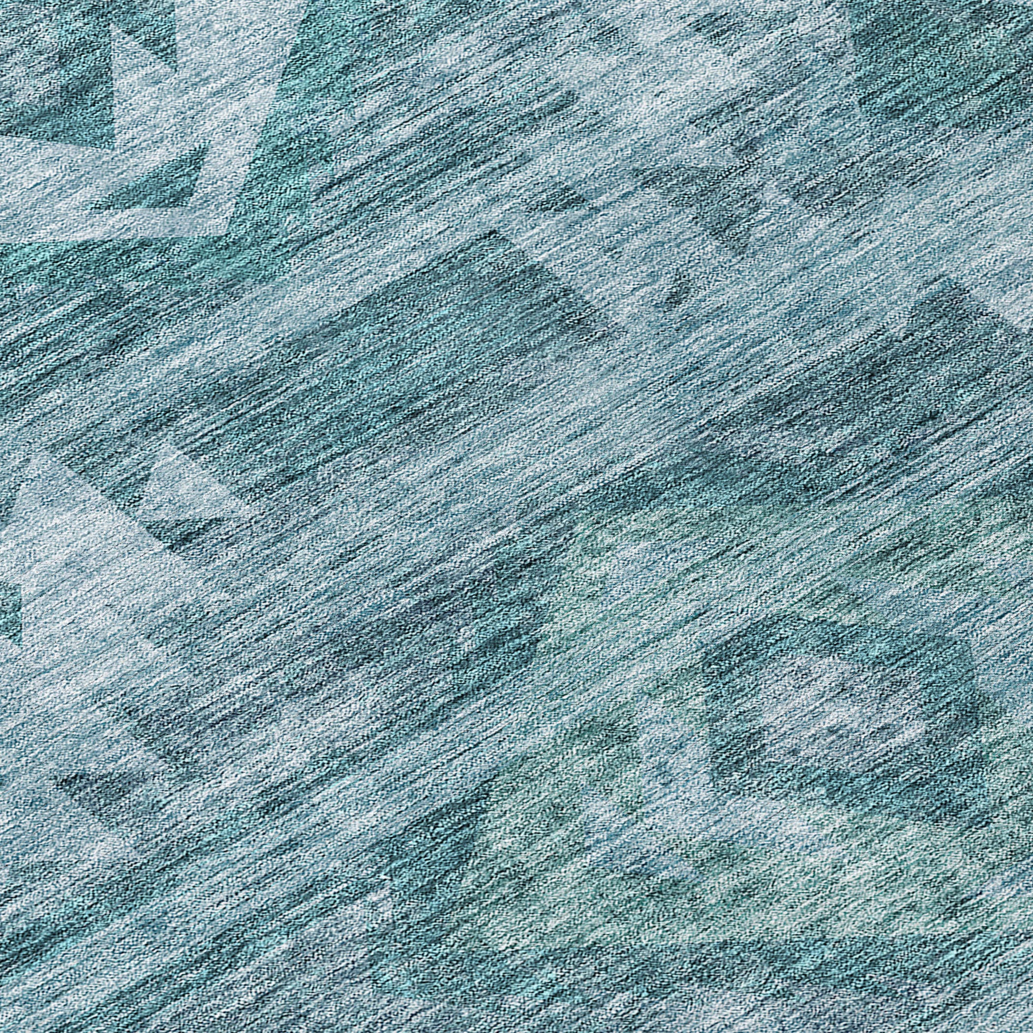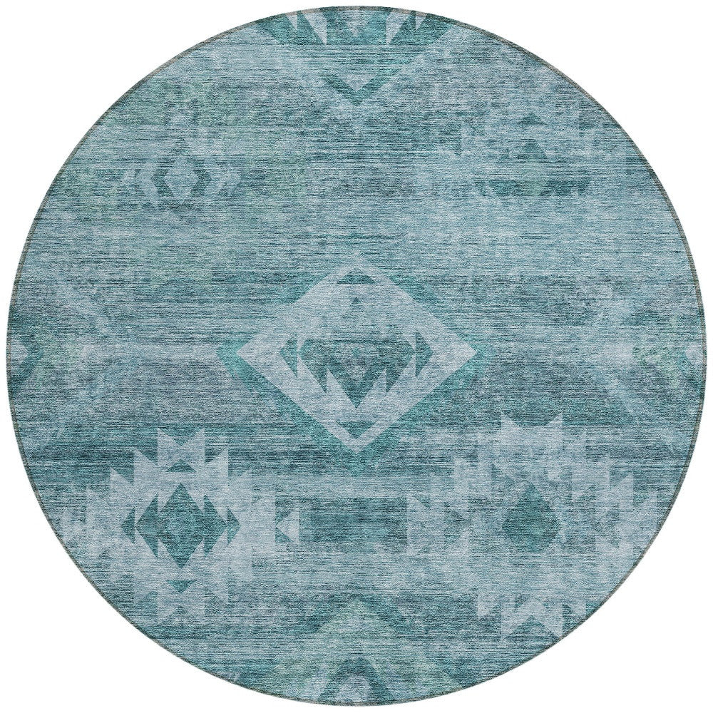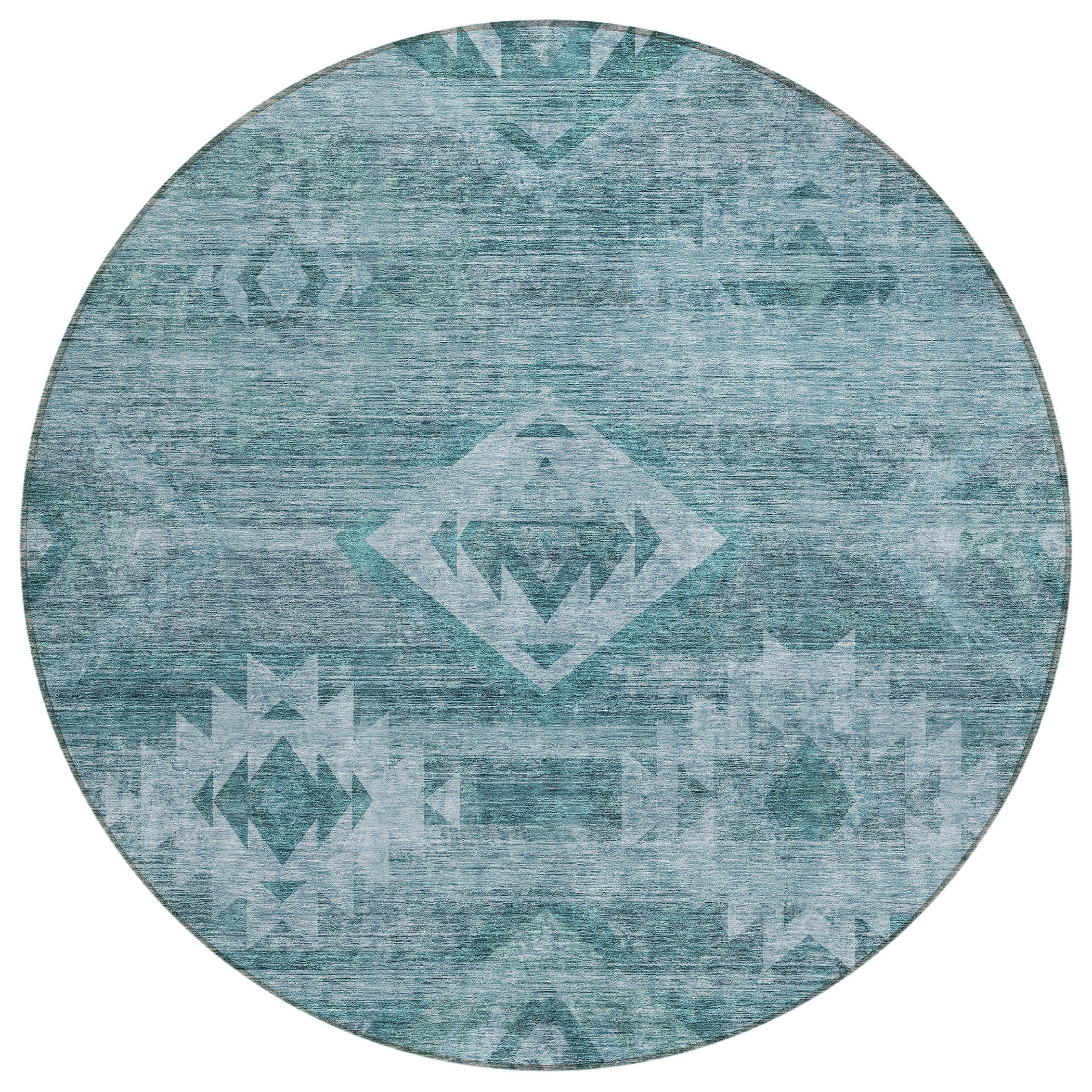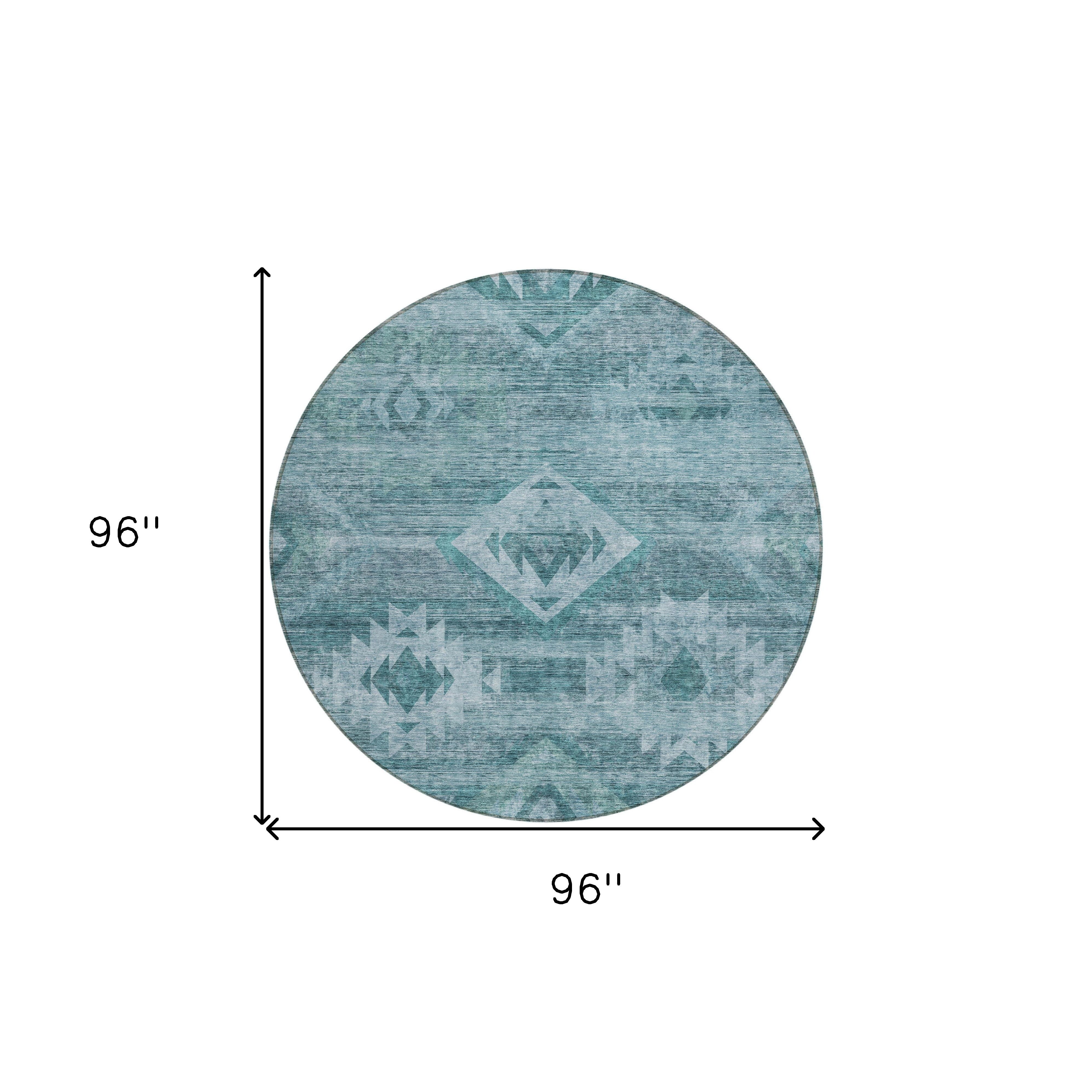 8' Teal Blue And Aqua Round Southwestern Washable Indoor Outdoor Area Rug