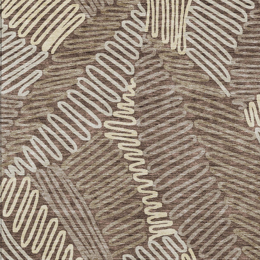 9' X 12' Chocolate And Ivory Floral Washable Indoor Outdoor Area Rug