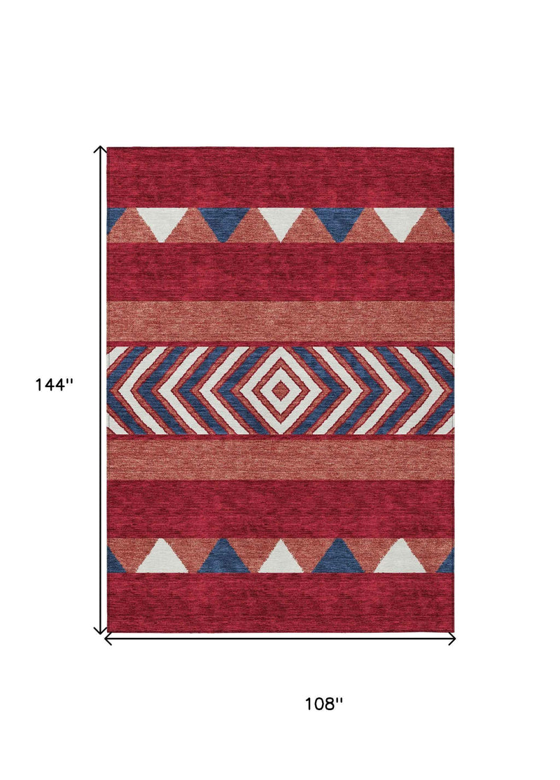 9' X 12' Red White And Navy Blue Southwestern Washable Indoor Outdoor Area Rug