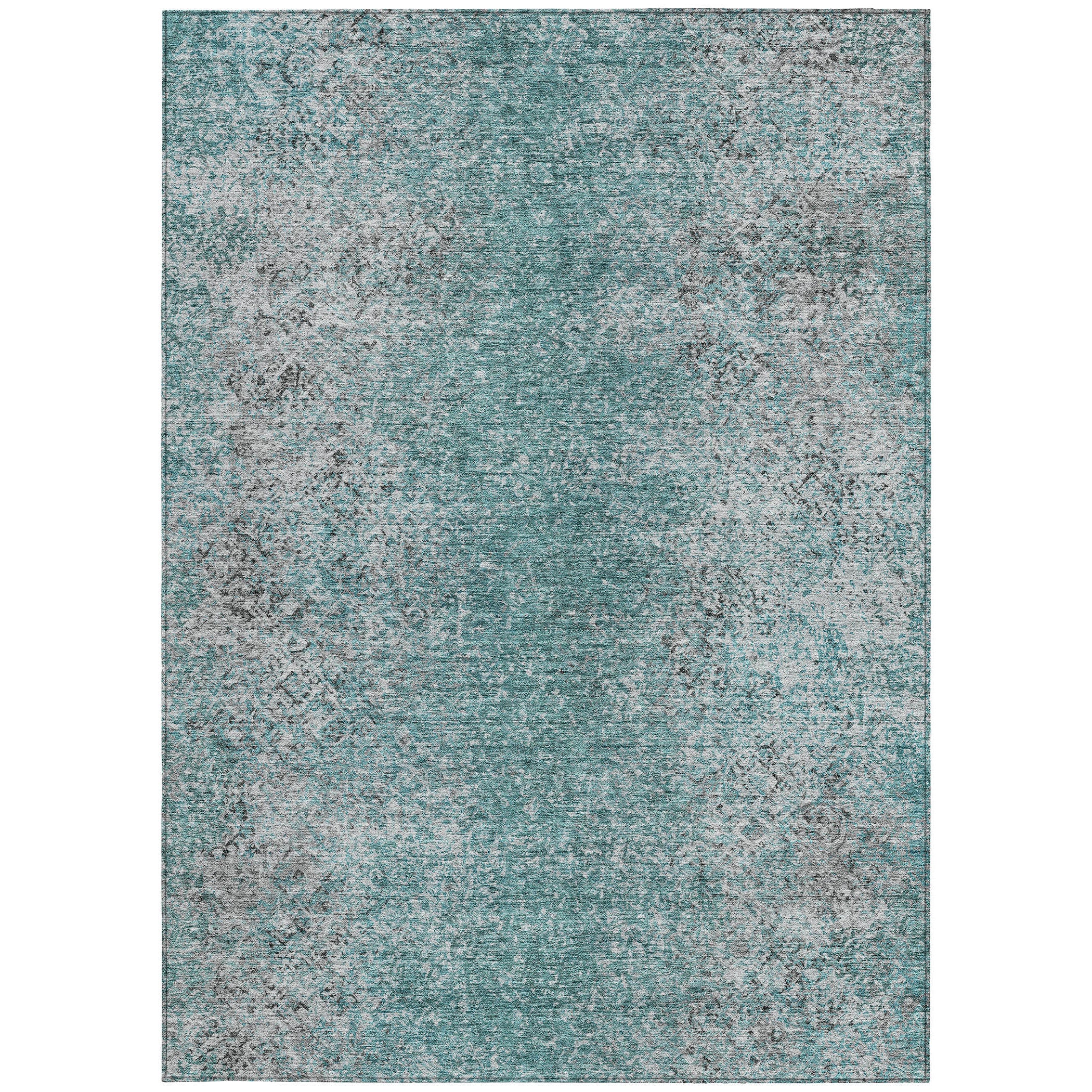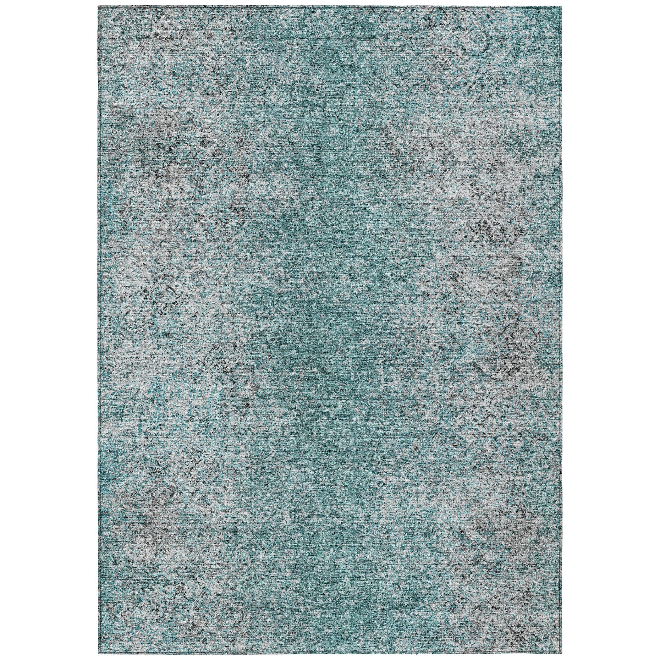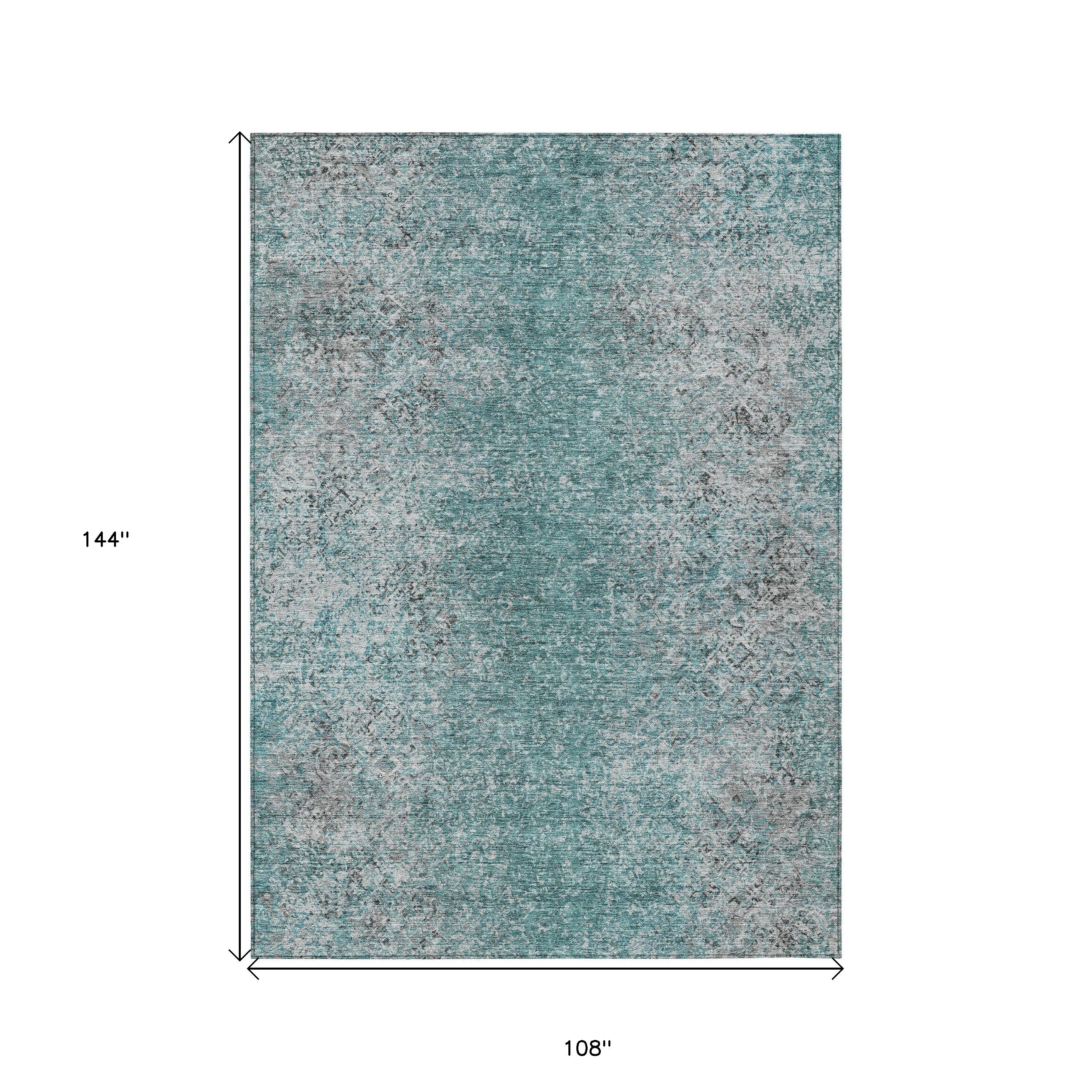 9' X 12' Teal Blue Gray And Charcoal Oriental Washable Indoor Outdoor Area Rug