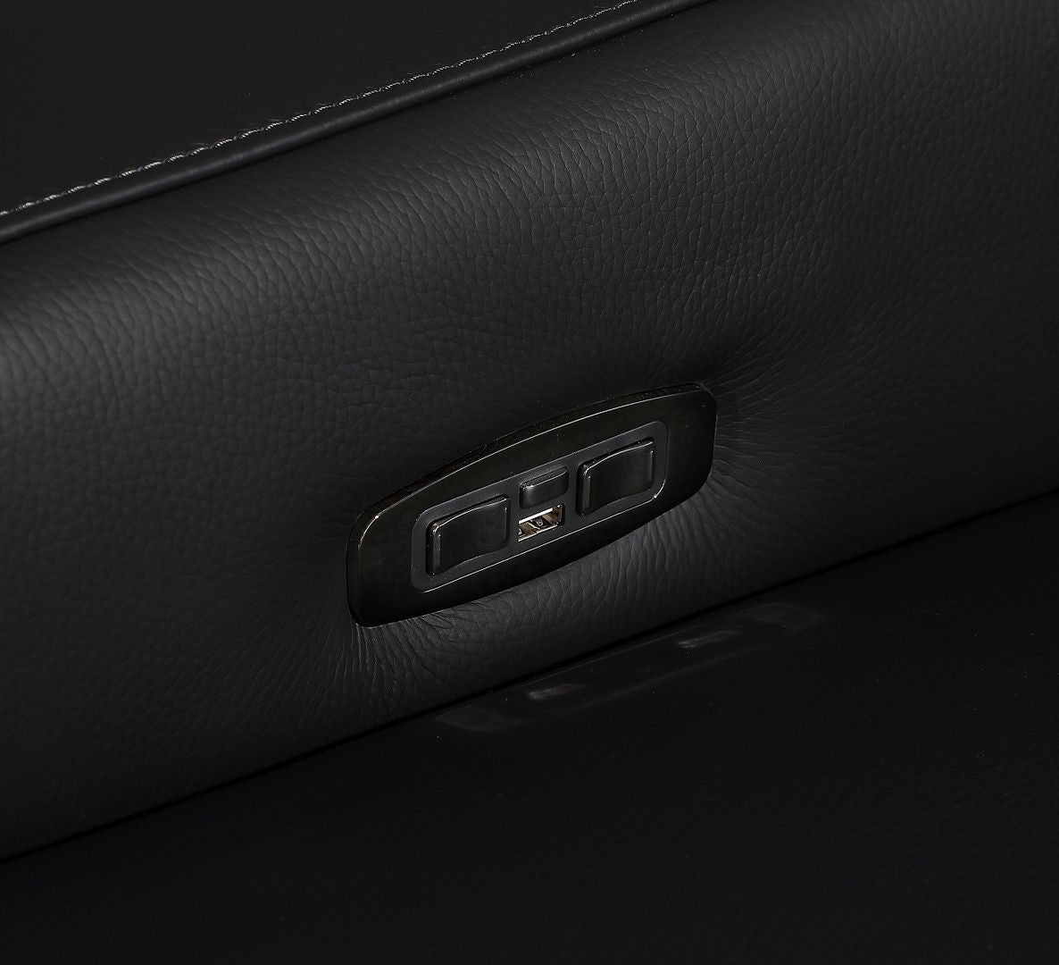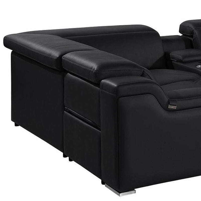 Black Italian Leather Power Reclining U Shaped Eight Piece Corner Sectional With Console