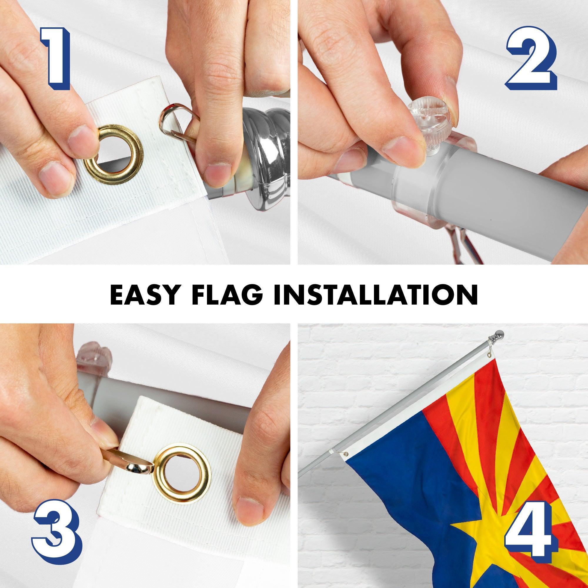 G128 - 6 Feet Tangle Free Spinning Flagpole (Silver) Arizona Double Sided Brass Grommets Embroidered 3x5 ft (Flag Included) Aluminum Flag Pole