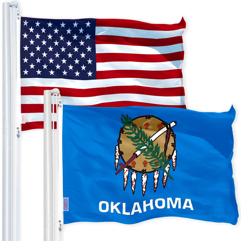 G128 Combo Pack: USA American Flag 3x5 Ft 150D Printed Stars & Oklahoma State Flag 3x5 Ft 150D Printed