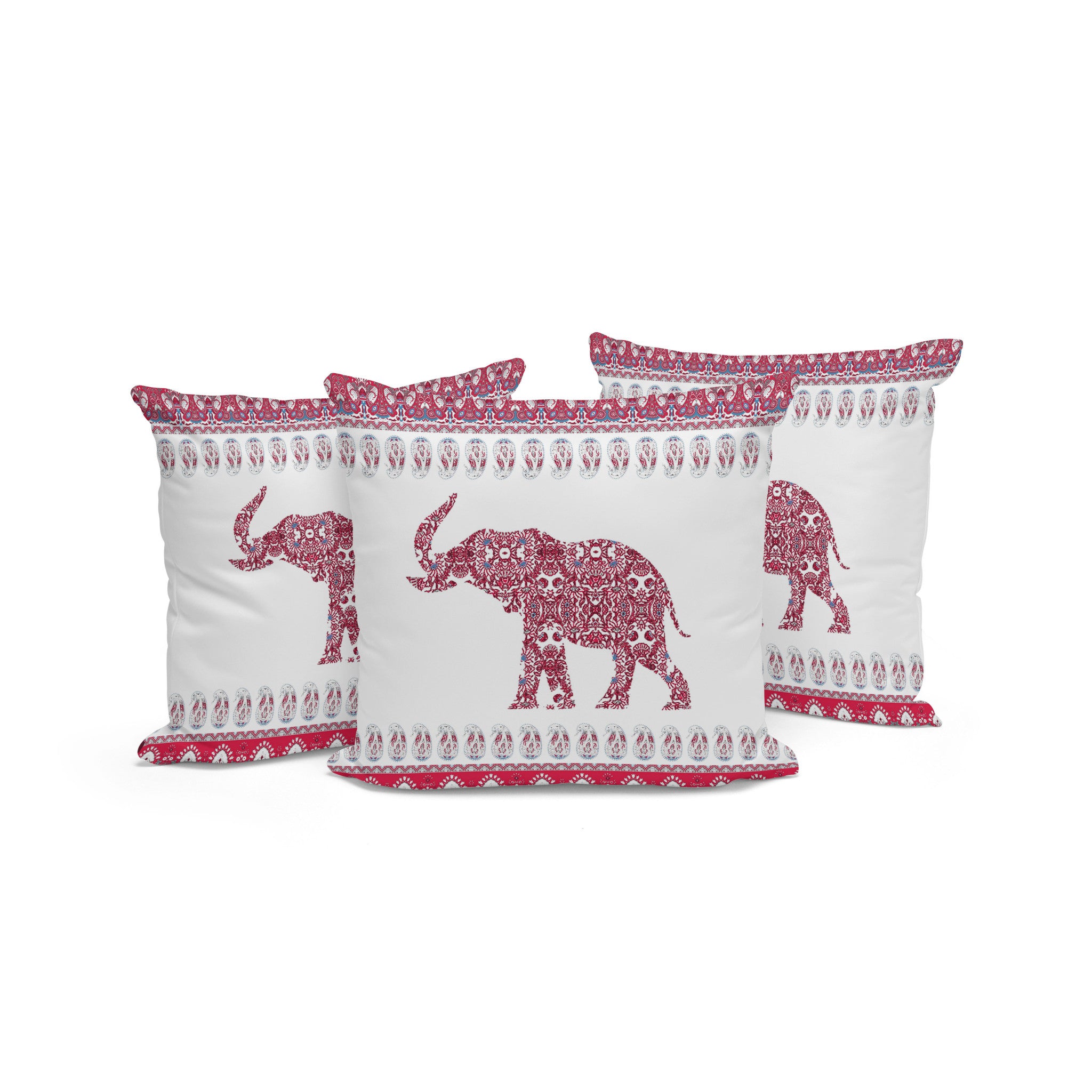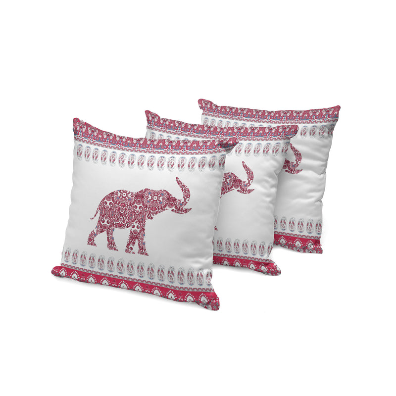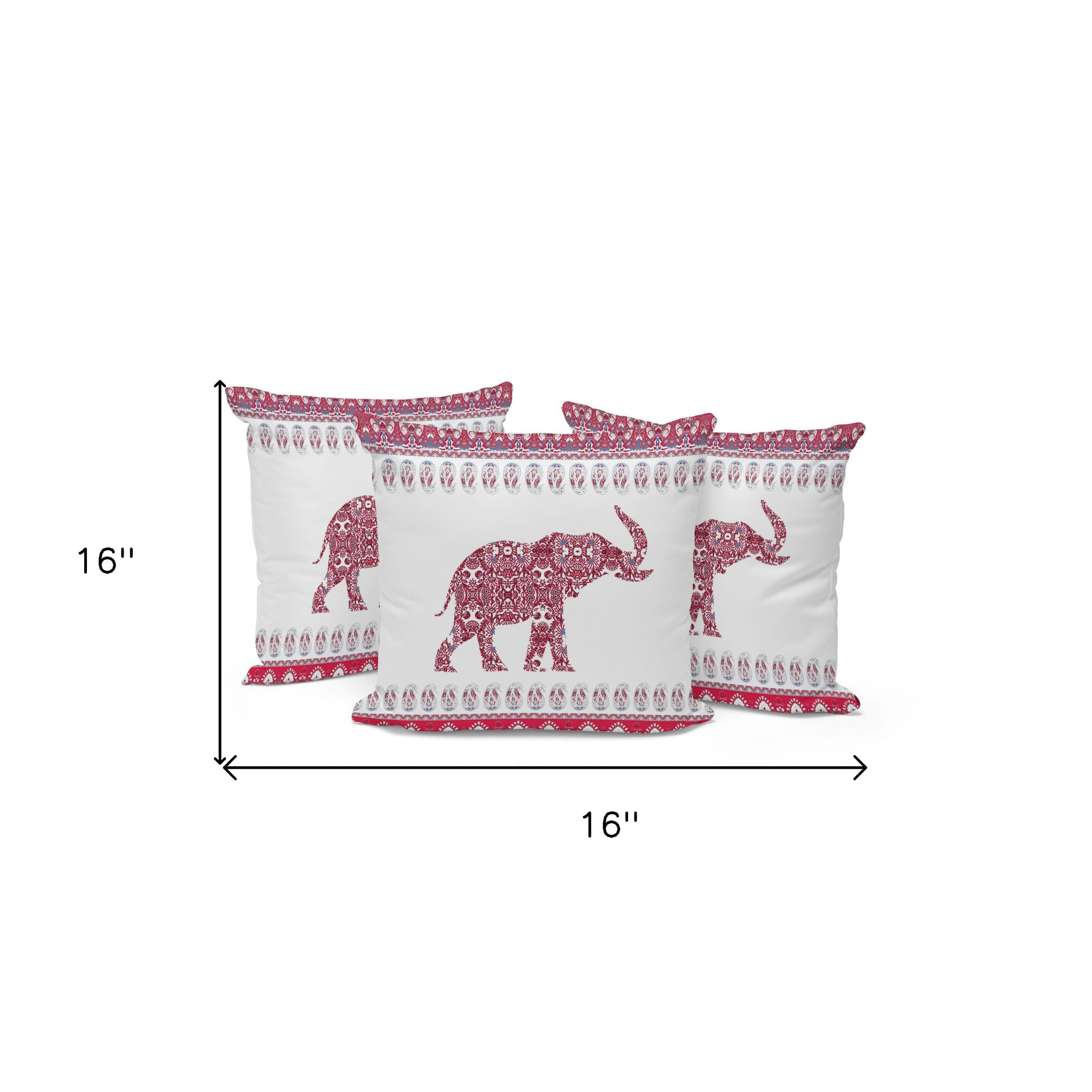 Set of Three 16" Red and White Elephant Does Not Apply Paisley Indoor Outdoor Throw Pillow
