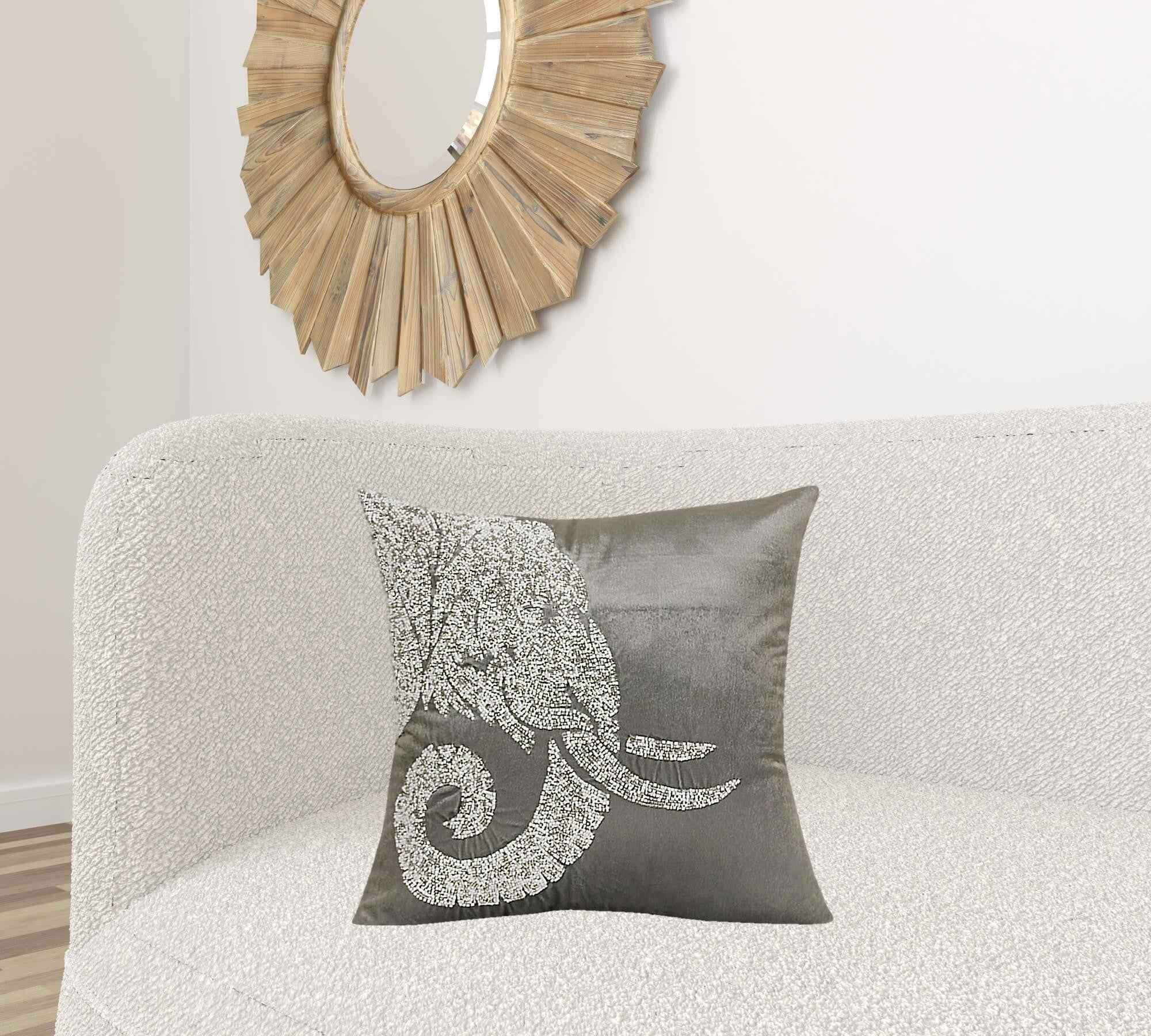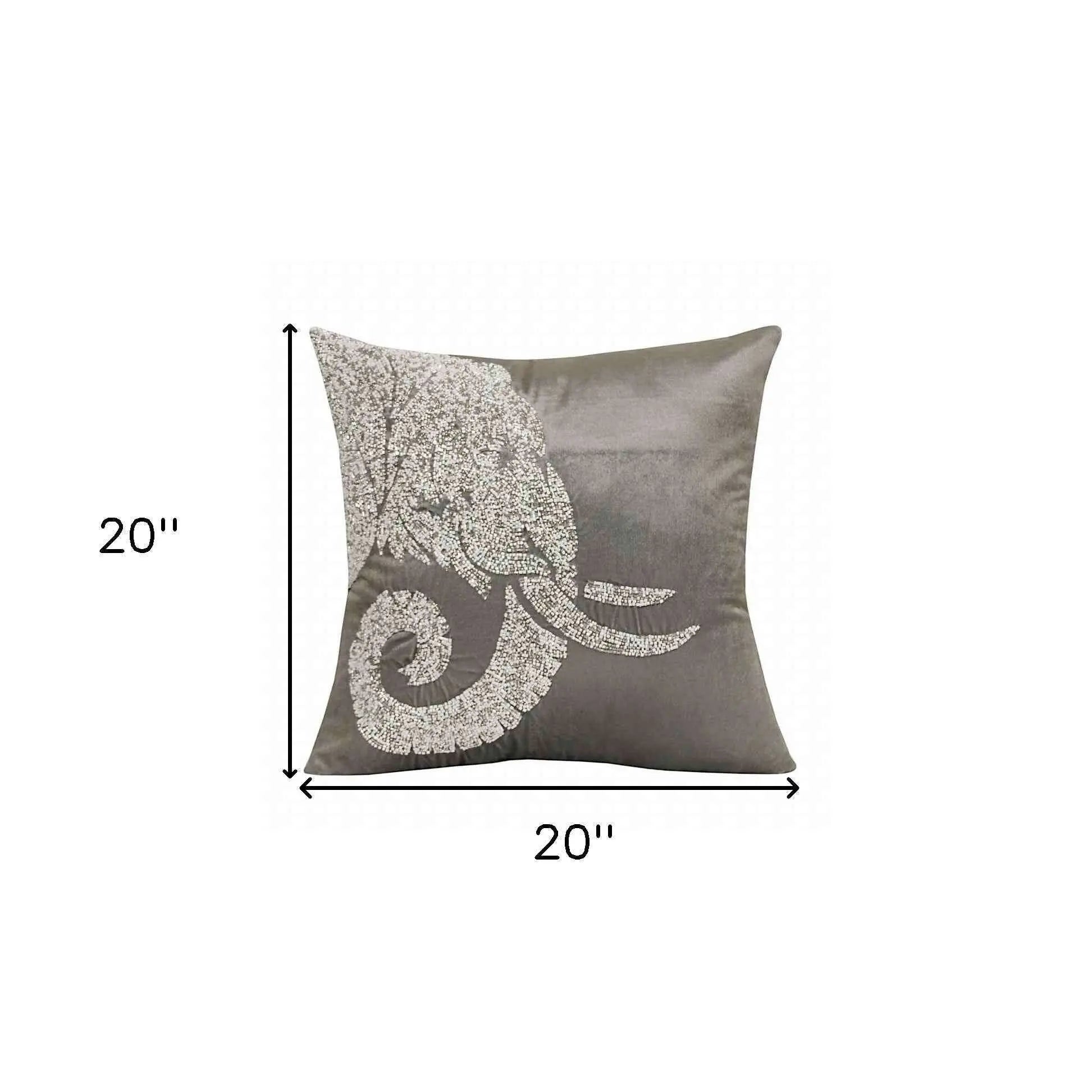 20" X 20" Gray And Silver Elephant Polyester Animal Print Zippered Pillow