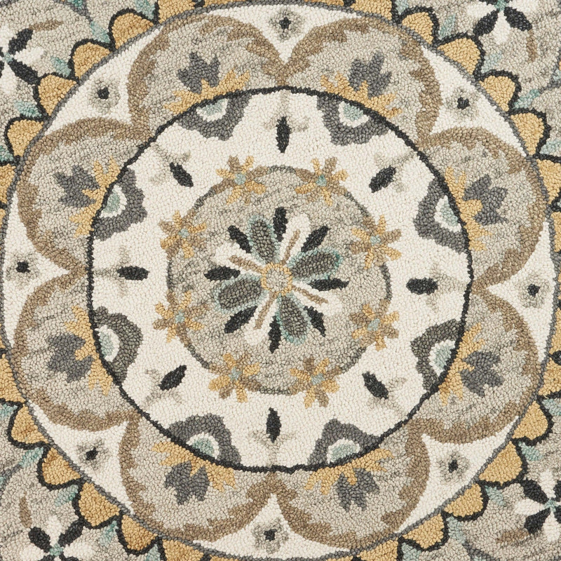 Captivating the aesthetics of traditional styling with a modern approach, this Round Gray and Ivory Floral Bloom Area Rug display a subtle palette to work well amidst any interior. The soft shades of gray and yellow with refined black borders over a white background resemble a piece of pencil drawing for visual appeal. This rug is hand-tufted with 100 % virgin wool to ensure durability and significant insulating property to serve well in both cold and warm conditions. Ideal for areas with high foot traffic, the smooth and low pile construction provides a lustrous surface texture, making it easy to clean and maintain while being an excellent accent on the floor. The subtle sophistication of the palette and patterns make this area rug a worthy addition to pair with a range of interior styles and decor. 48”